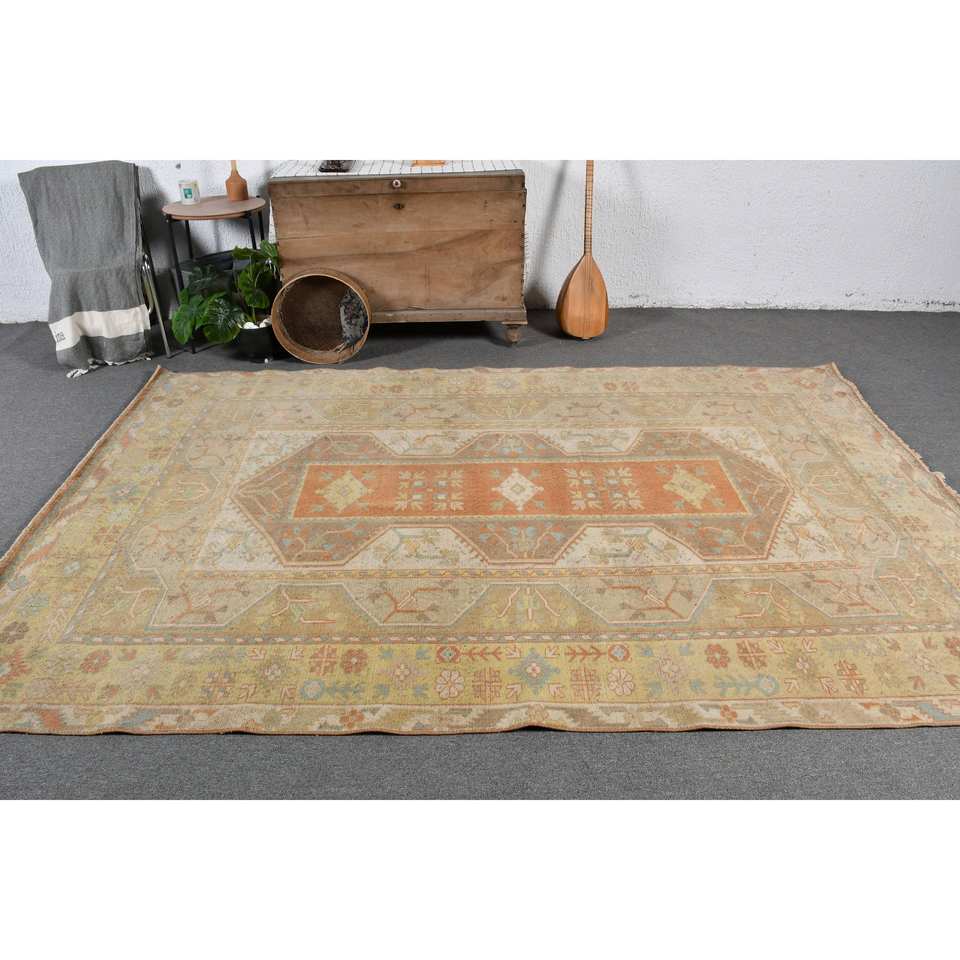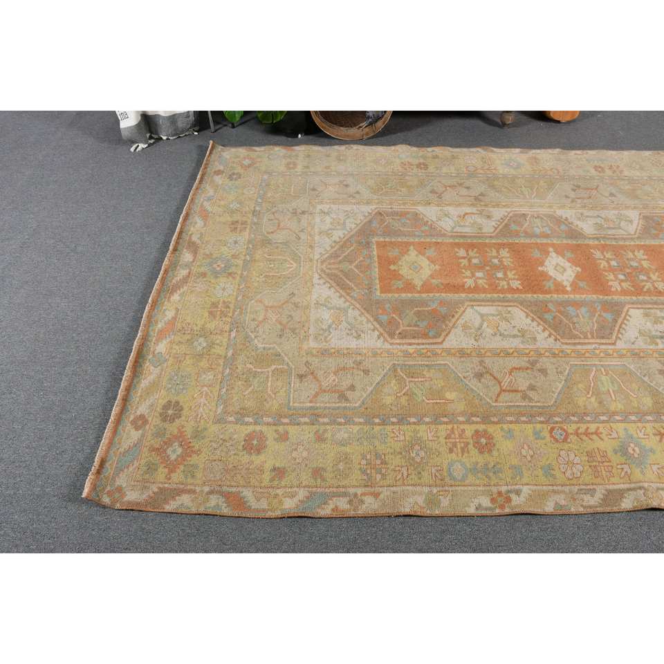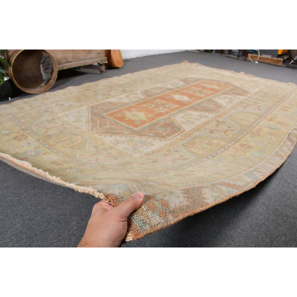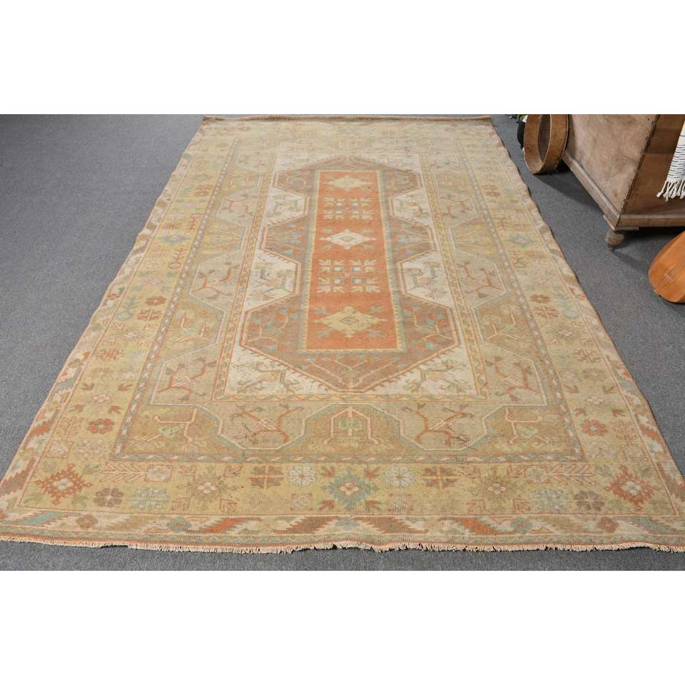 พรมขนทะเลสีเบจสีส้มสไตล์วินเทจขนาด6 x 9,3ft ผืนใหญ่ทรงสี่เหลี่ยมผืนผ้าสไตล์คลาสสิกสำหรับห้องโถงพรมยางสำหรับห้อง