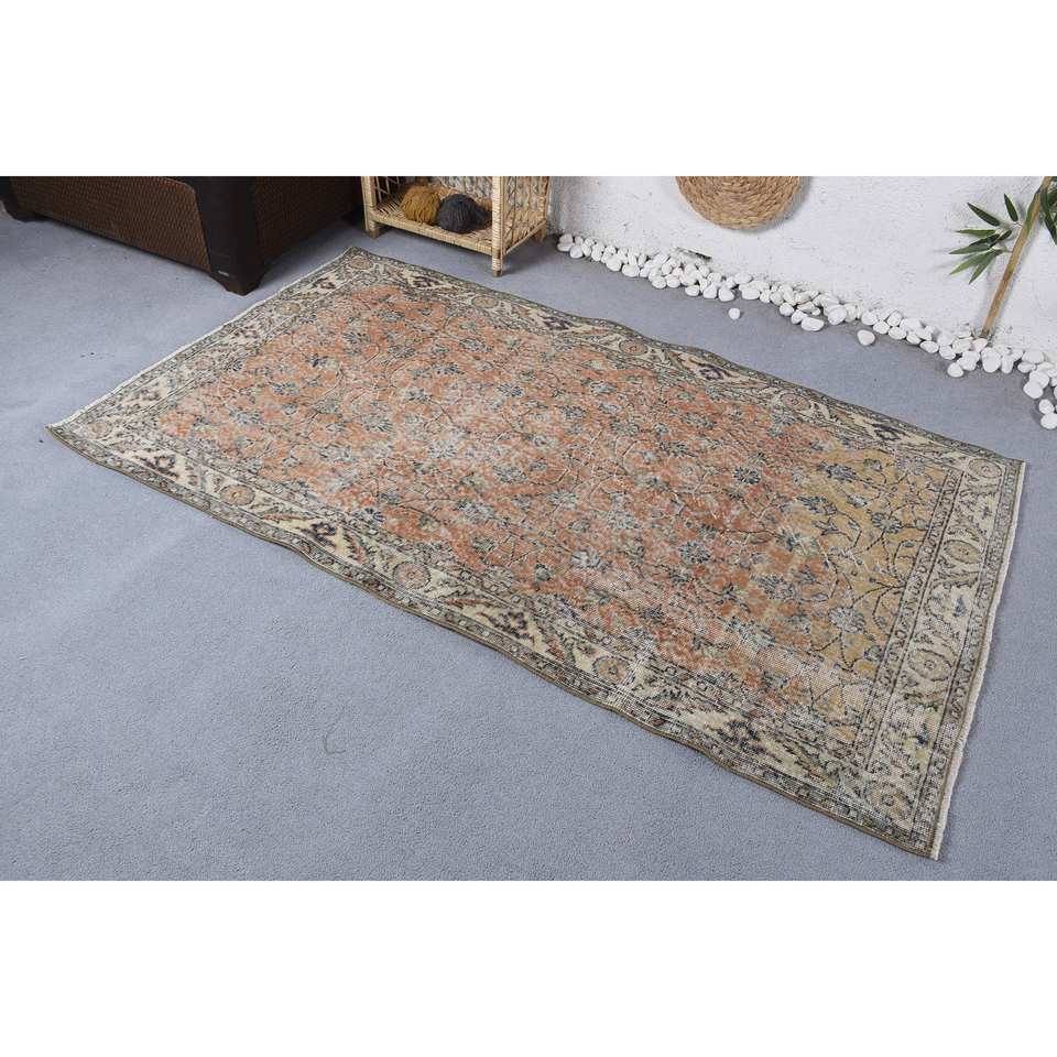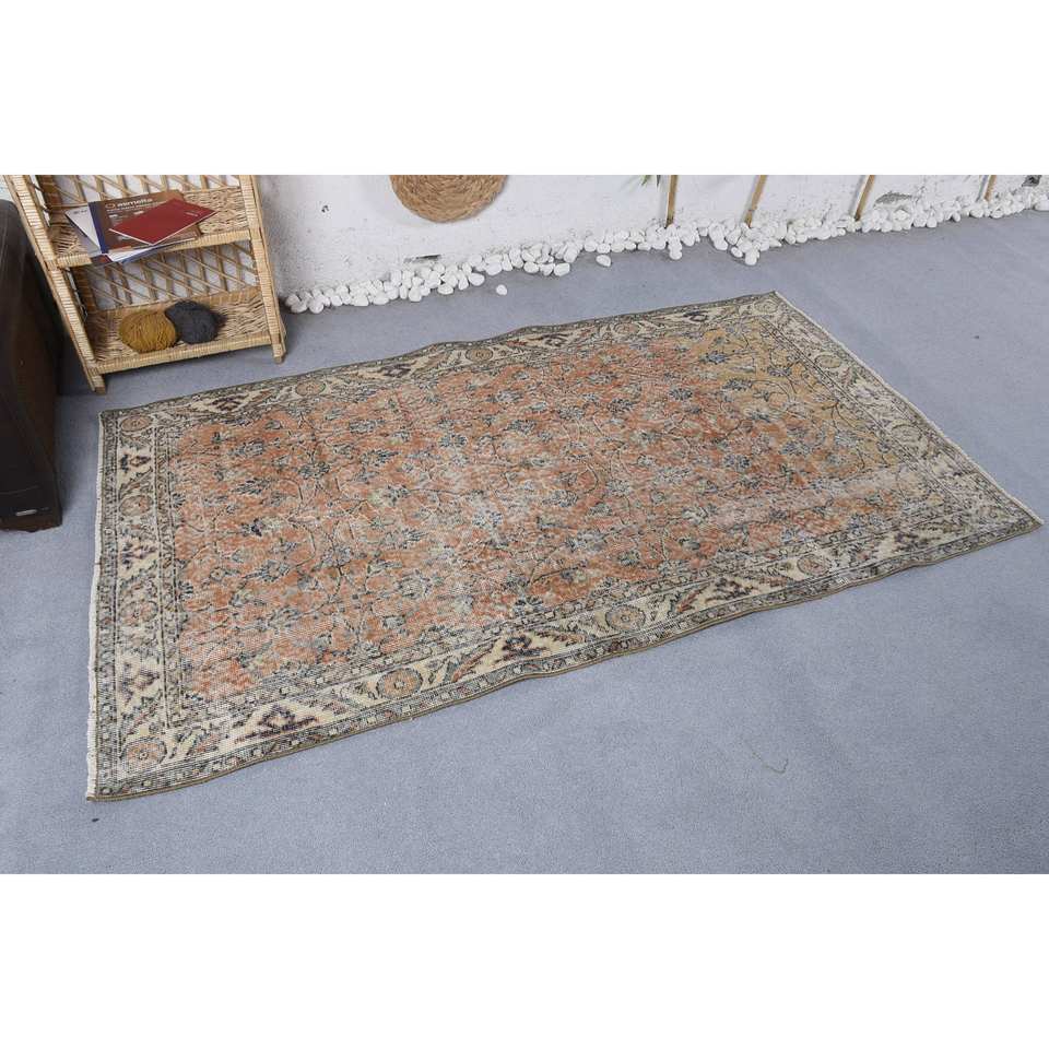 พรมขนสัตว์สีเบจสีส้มวินเทจขนาด3.7x6.5ฟุตการเย็บปะติดปะต่อกันสไตล์ยางหนุนหลังสำหรับห้องนอนห้องโถงสี่เหลี่ยมผืนผ้าสำหรับวัยรุ่นต่ำ