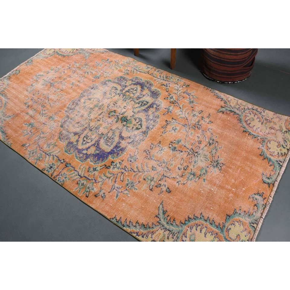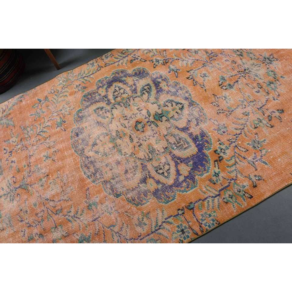 พรมขนสัตว์สีเบจสีส้มแนววินเทจ8FT 4.2 x งานแฮนด์เมดสไตล์ทาบริซการออกแบบปะต่อกันลาเท็กซ์ด้านหลังสำหรับวัยรุ่นสำหรับโถงทางเดิน