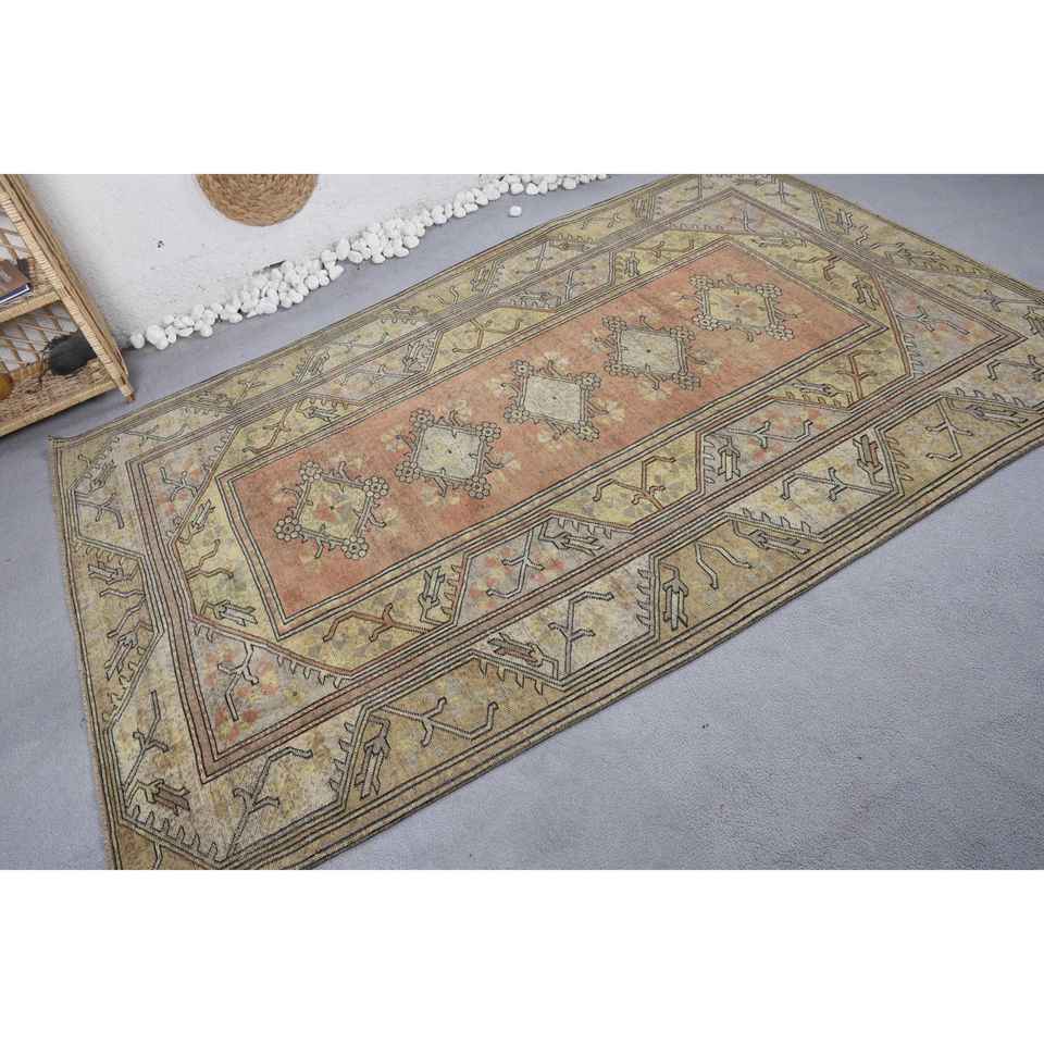 พรมขนสัตว์สีเบจสีส้มวินเทจ5'1 "x 8 'ทำด้วยมือสไตล์ทาบริซขนาดใหญ่ออกแบบปะต่อยางหลังสำหรับวัยรุ่น