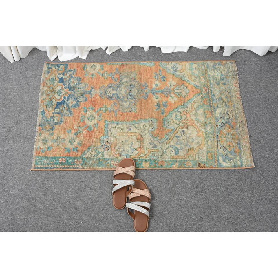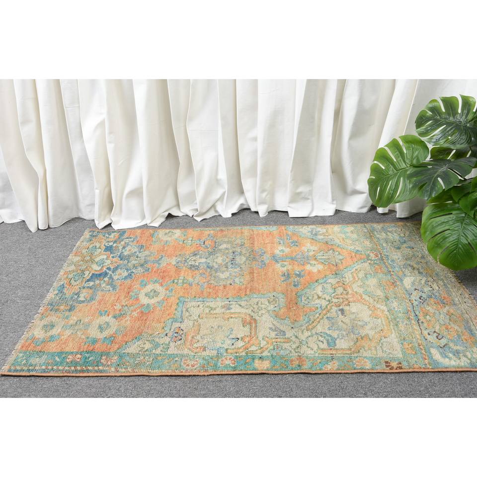 พรมขนสัตว์ปะต่อสีส้มสีฟ้าแนววินเทจ1.9 x 3.4ft แบนแบบตุรกีพรมสำหรับห้องนั่งเล่นยางรองความกว้าง4เมตรสำหรับตกแต่ง