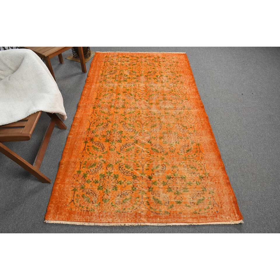 พรมขนสัตว์ตุรกีสีส้มวินเทจ3.8 'x 6.9' (116x209ซม.) ทรงสี่เหลี่ยมผืนผ้าพื้นที่ขนาดใหญ่แบบคลาสสิกสำหรับโถงรถ