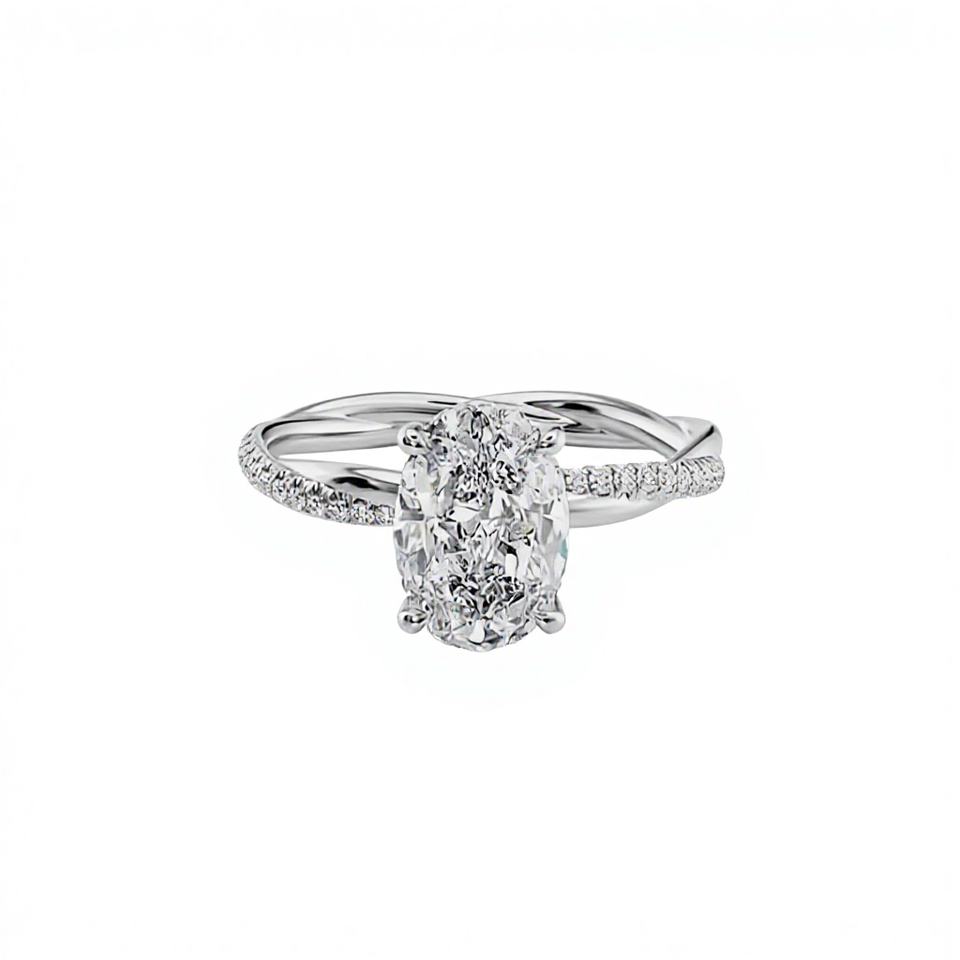 แหวนเพชรทรงรีวินเทจ ตัวเรือนเงินแท้ 925 ชุบโรเดียม ได้รับการรับรองจาก IGI เครื่องประดับสำหรับผู้หญิง ประดับเพชรแบบ Pave Setting สี E