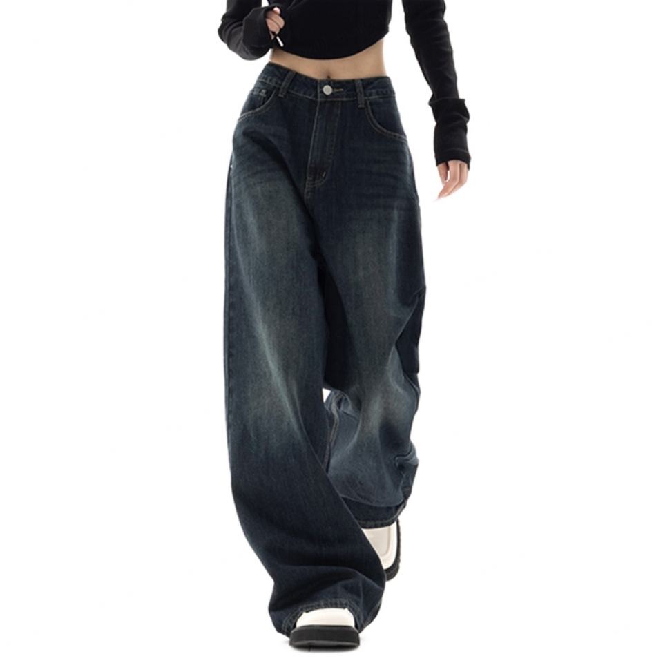 กางเกงยีนส์วินเทจทรงโอเวอร์ไซส์ แฟชั่นทรงตรงหลวมๆ ชุดเดรสยีนส์ลายโลโก้สำหรับผู้หญิง