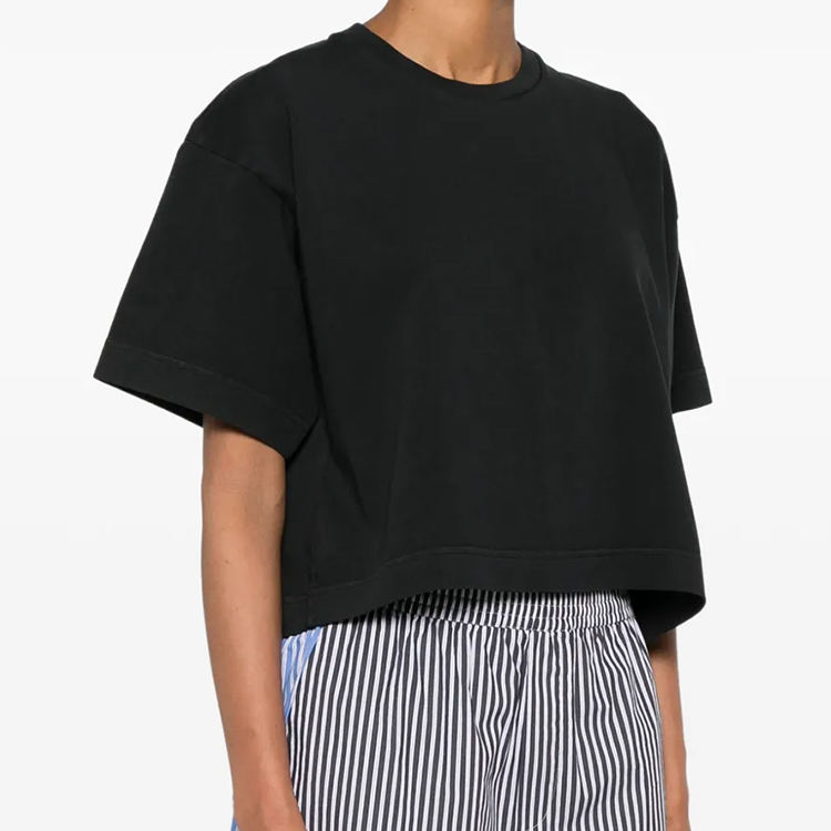 เสื้อครอปโอเวอร์ไซส์วินเทจเสื้อยืดพิมพ์ลายหนา250 GSM heavyweight ถักไหล่ตกขนาดพอดีตัวอักษร