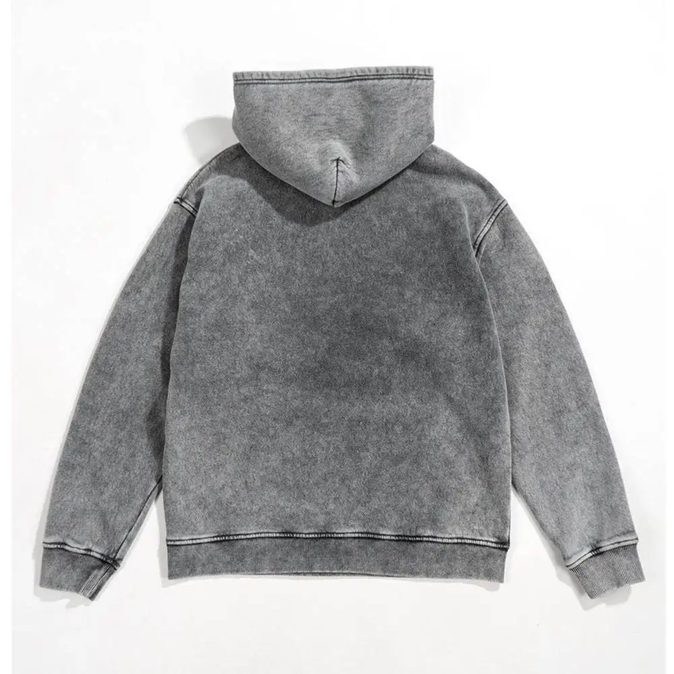 เสื้อฮู้ดดี้โอเวอร์ไซส์สไตล์วินเทจ ผ้าหนานุ่ม ลุคย้อนยุค ยูนิเซ็กส์ ทรงสตรีทแวร์ คอตัดเย็บพิเศษ ผ้าฟลีซคอตตอน 100% ซักย้อมสีแบบแอซิดวอช ขาดๆ แบบดีไซน์พิเศษ