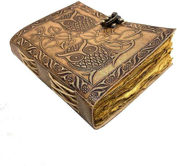 สมุดร่างปกหนังลายนูนรูปนกฮูกสไตล์วินเทจแผ่น100ปกแข็งสมุดเขียนข้อความคัดลายมือไดอารี่ของขวัญที่ยอดเยี่ยมสำหรับการร่างประดับตกแต่ง