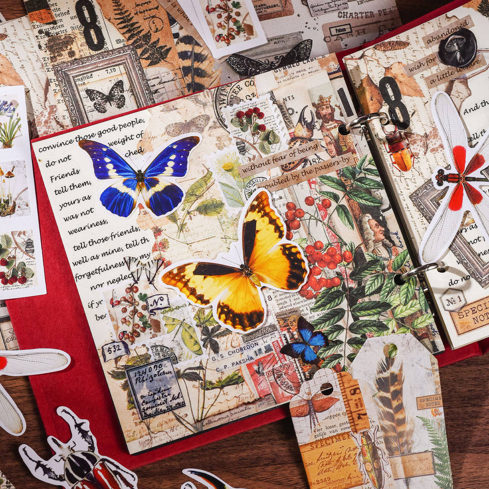 ชุดสติกเกอร์วินเทจลายเห็ด ผีเสื้อ ดวงจันทร์ วัสดุทำจาก PET สำหรับตกแต่งสมุดบันทึก DIY