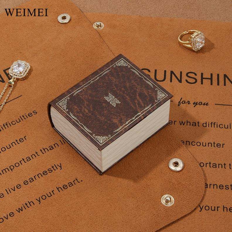 กล่องเครื่องประดับกระดาษวินเทจสไตล์หนังสือรีไซเคิลได้กำหนดเองบรรจุภัณฑ์สร้อยคอแหวนสีน้ำตาล