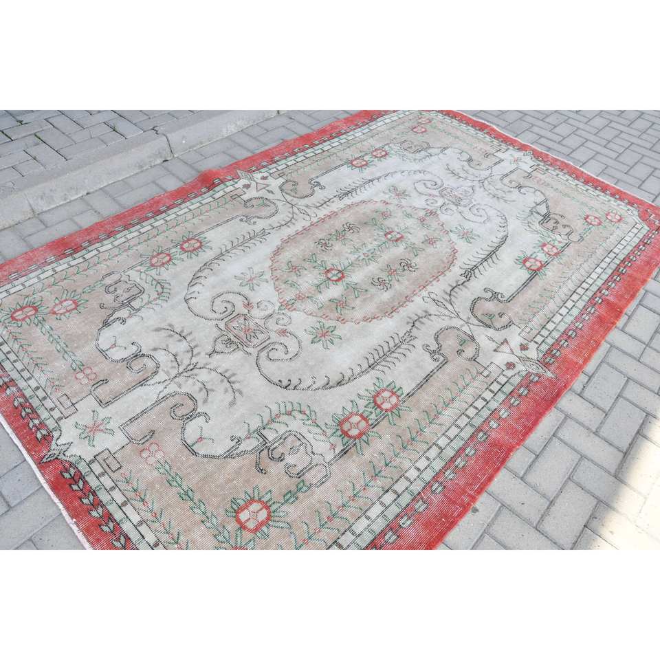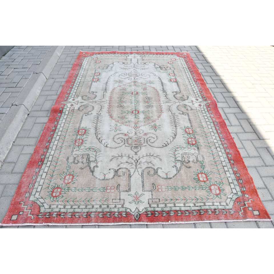 พรมขนสัตว์เย็บปะแบบวินเทจขนาด5.7x9.2ฟุตสีแดงผ้าทอแบบตุรกีสำหรับตกแต่งห้องนั่งเล่นพื้นหลังทำจากยาง