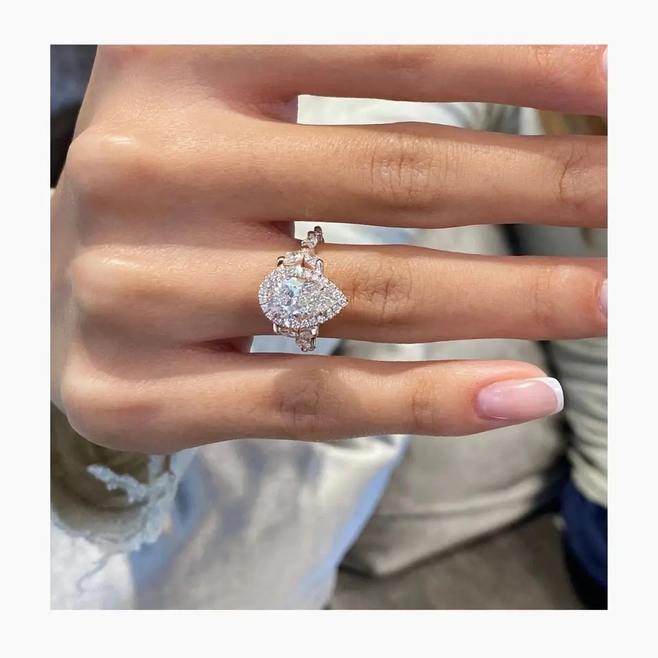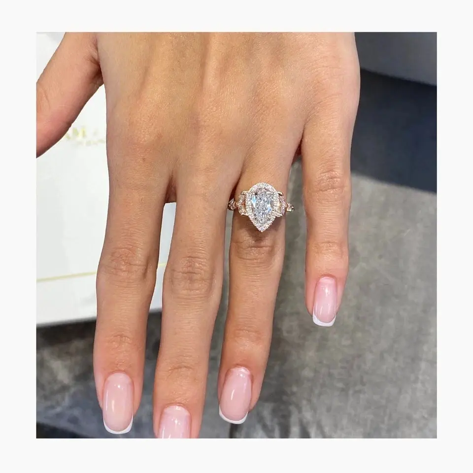 แหวนหมั้นเพชรโมอิสซาไนต์ทรงลูกแพร์วินเทจ ประดับด้วยเฮโล่ ทำจากเงินแท้ 925 ชุบทองคำสีกุหลาบ แหวนเจ้าสาวสุดหรู TISHYA DIAMOND