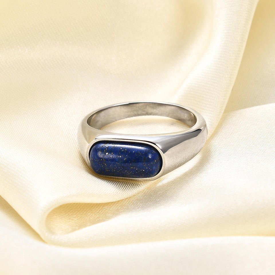 ชุดแหวนวินเทจคลาสสิก 8 มม. ประดับด้วยหินธรรมชาติ แหวนสแตนเลสชุบทองคำขาวสำหรับผู้หญิง UIONEN 773