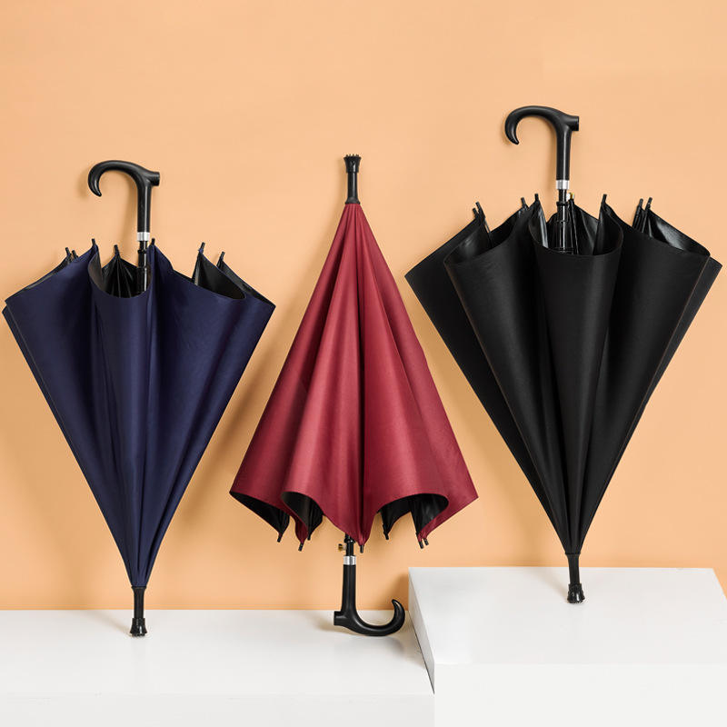 ร่มวินเทจแบบมีหูจับรูปหัวเป็ด ปรับแต่งได้ ทนลม ยาวตรง กึ่งอัตโนมัติ สีพื้น ราคาแพง ของตกแต่ง