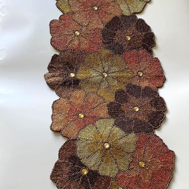 Handmade 14-Inch Silver and Gold Beaded Round Table Placemat Set Drying Slate and Glass Mat with Oval Pattern for Dining