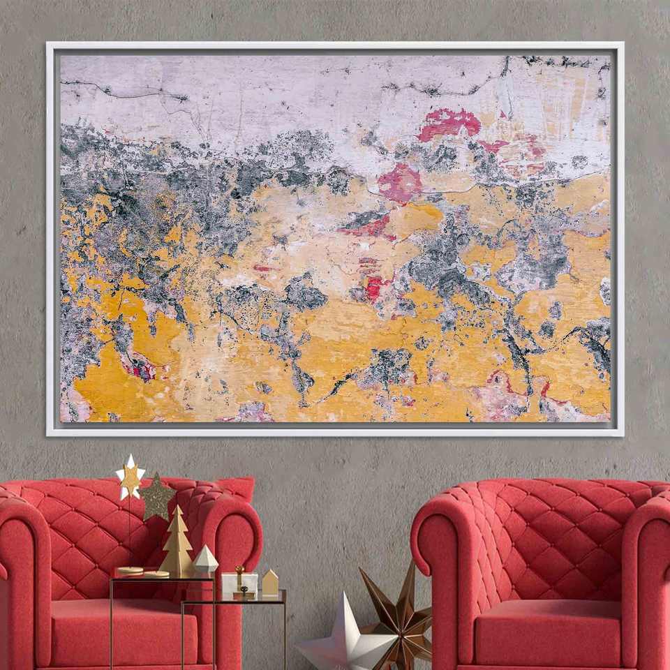 ผืนผ้าใบพลาสเตอร์วินเทจ: ภาพพิมพ์ศิลปะบนกระจกนิรภัยแบบนามธรรม พร้อมกรอบสีขาว
