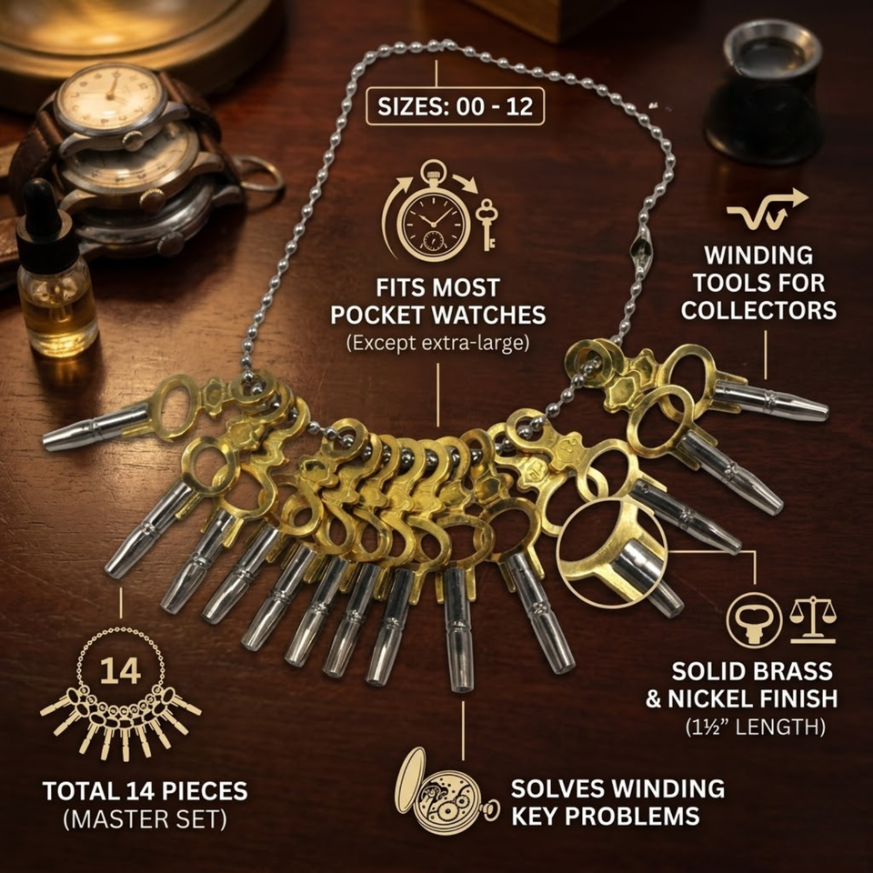 ชุดกุญแจไขนาฬิกาพกสไตล์วินเทจ | 14 ขนาด 00-12 ความเข้ากันได้แบบสากล | เครื่องมือซ่อมแซมเหล็กทองเหลืองสำหรับชุดซ่อมนาฬิกาโบราณ