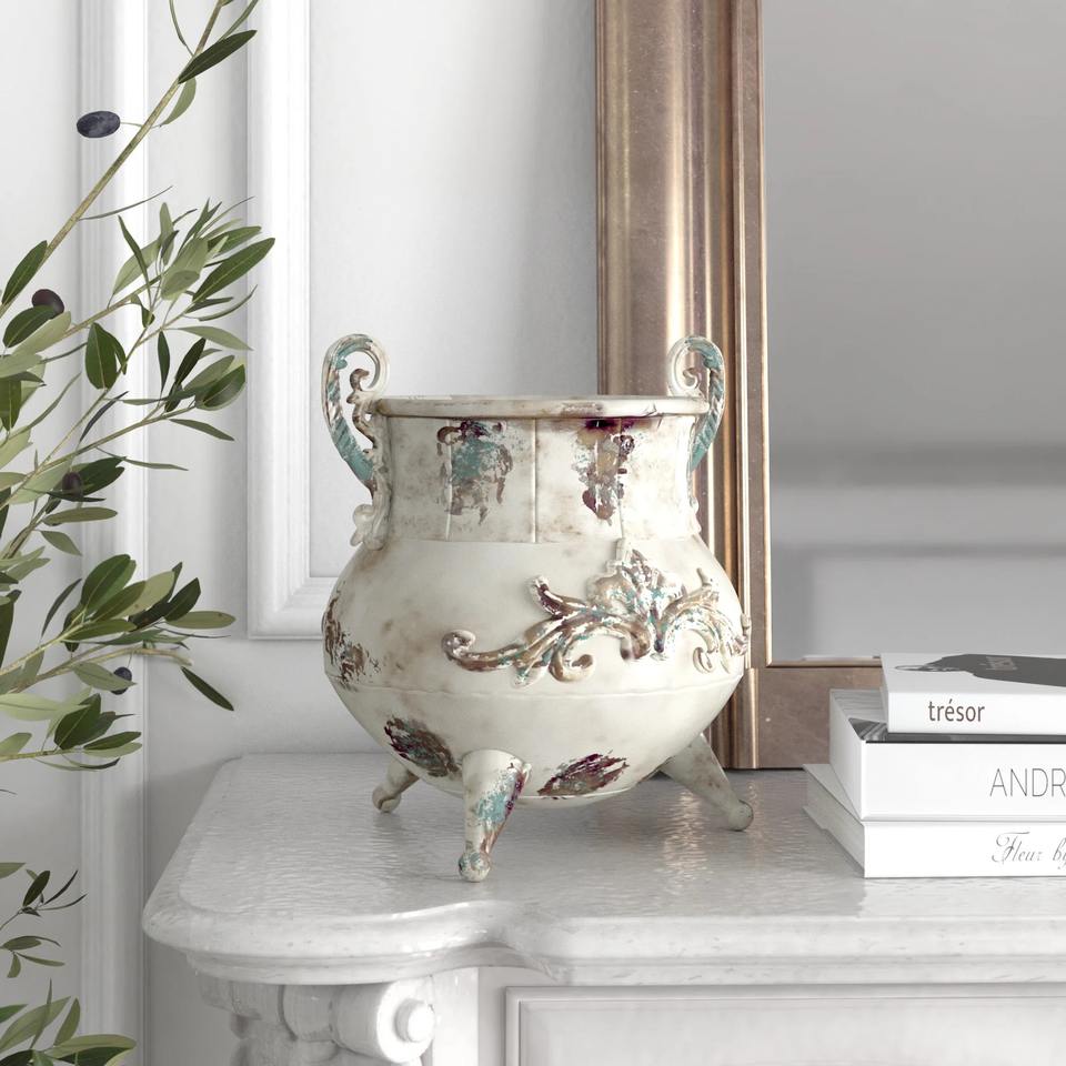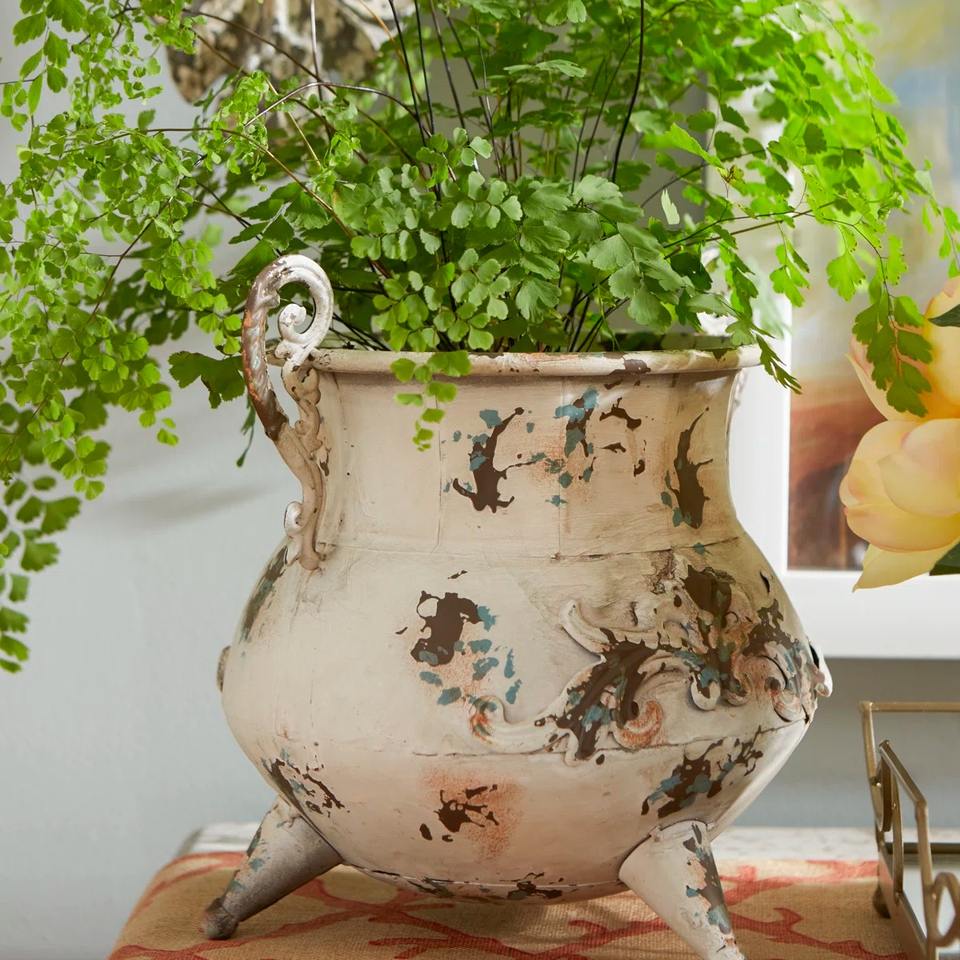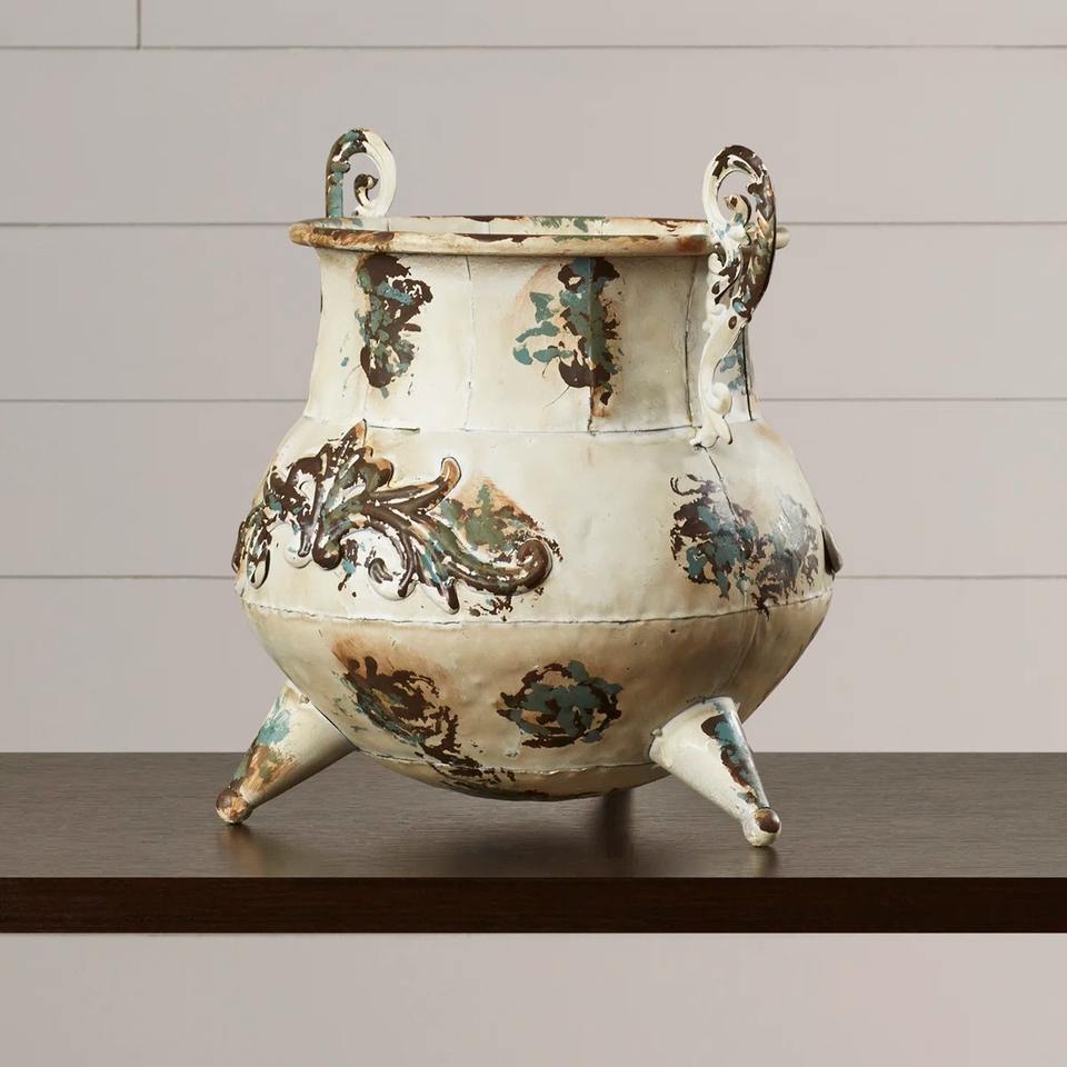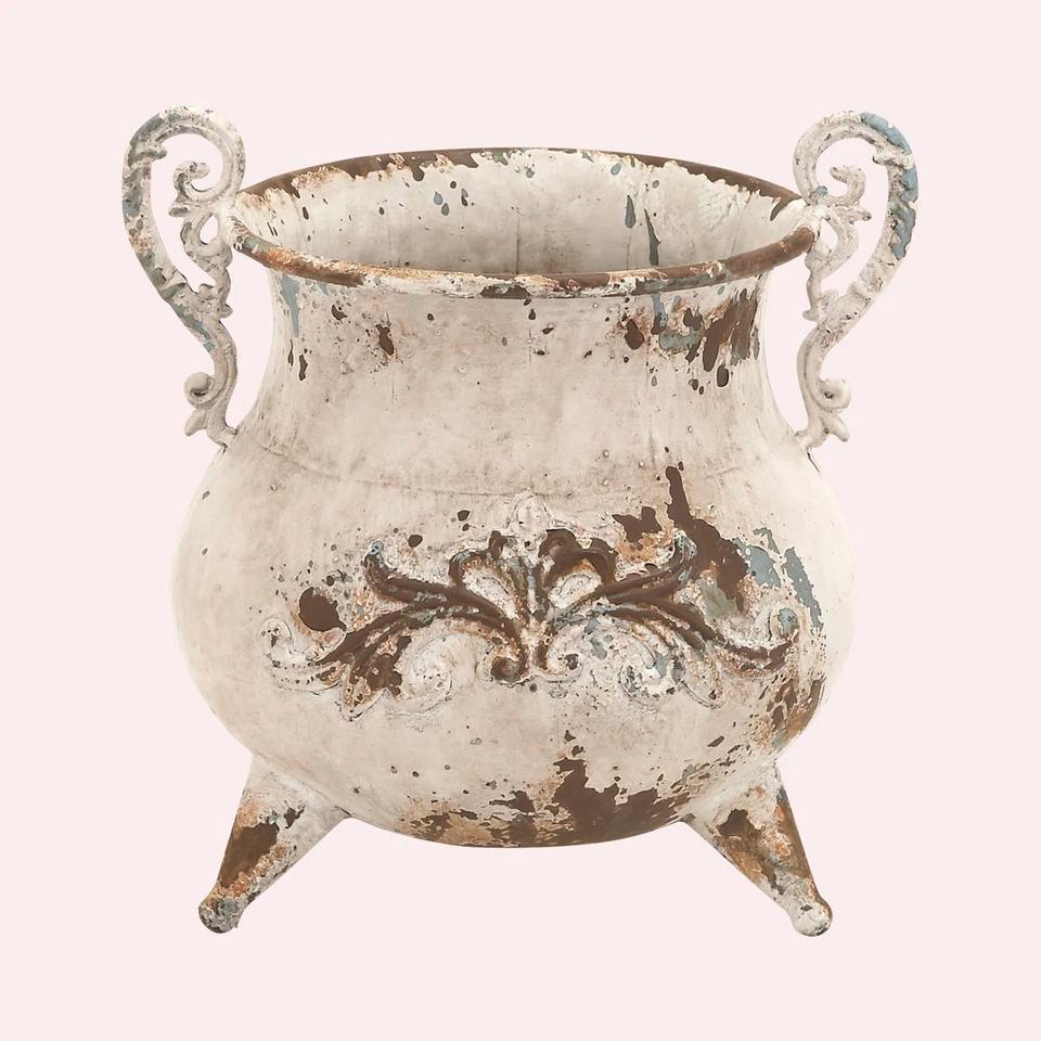 แจกันดอกไม้โลหะสไตล์วินเทจพร้อมที่จับสำหรับตกแต่งบ้านสไตล์กระถางต้นไม้ที่มีเสน่ห์และการจัดเรียงที่สวยงาม
