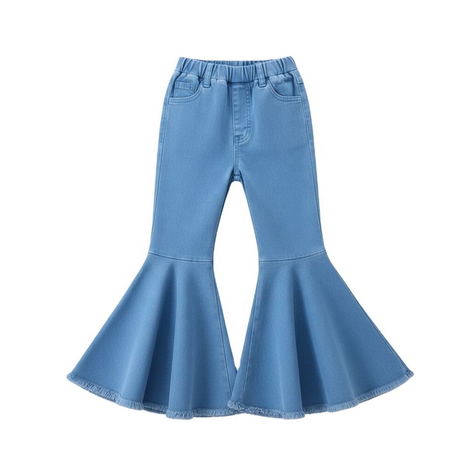 กางเกงยีนส์ทรงบูทคัทพิมพ์ลายวินเทจสำหรับเด็กผู้หญิง ทรงปกติ ผลิตจากผ้าเดนิมถักผสมโพลีเอสเตอร์และคอตตอน เหมาะสำหรับฤดูร้อน ฤดูใบไม้ร่วง และฤดูใบไม้ผลิ
