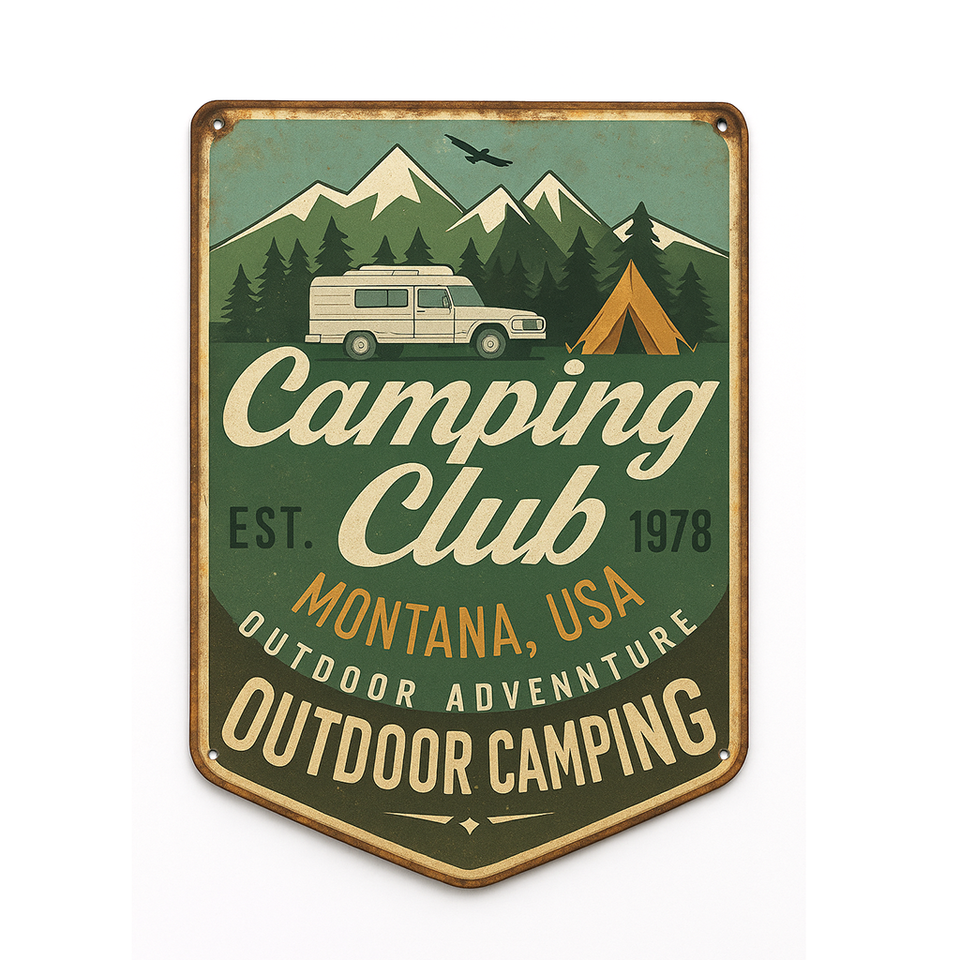 ป้ายโฆษณาโลหะอลูมิเนียมพิมพ์ลายวินเทจสำหรับธุรกิจกลางแจ้ง