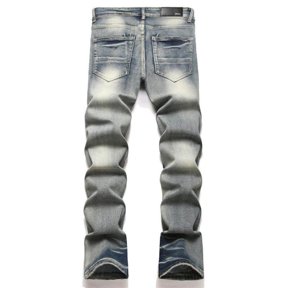 กางเกงยีนส์วินเทจพังก์ทรงสลิมตรงขาบานประดับคริสตัล สไตล์ลำลองสำหรับฤดูใบไม้ร่วง ฤดูหนาว ฤดูร้อน สีเดนิมฟอกปานกลาง