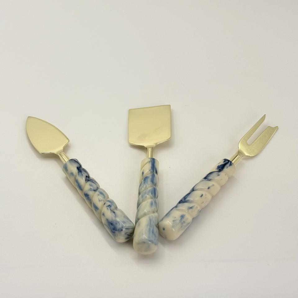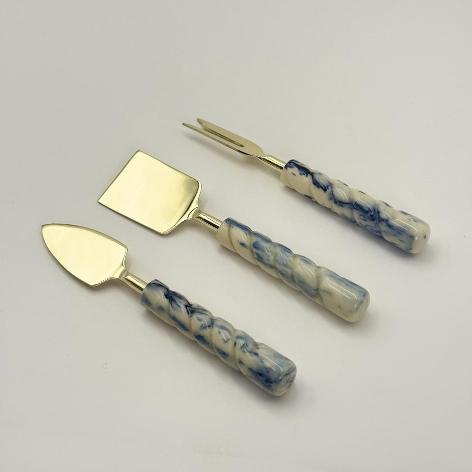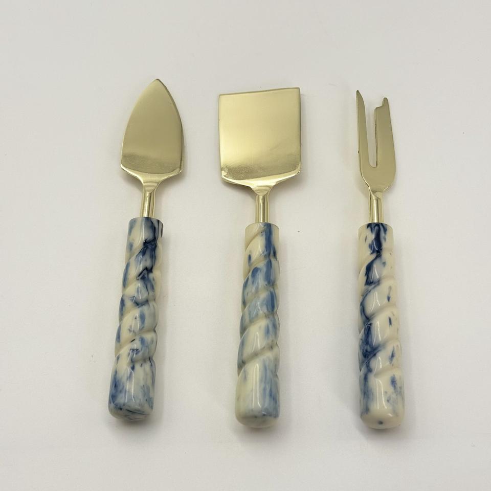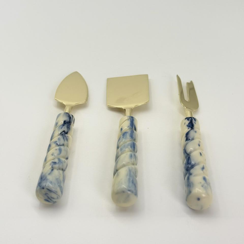 ชุดชีสสแตนเลสคุณภาพวินเทจพร้อมด้ามจับเรซิ่น มีดชีส ของตกแต่งโต๊ะครัว อุปกรณ์ตัดเนยและพิซซ่า