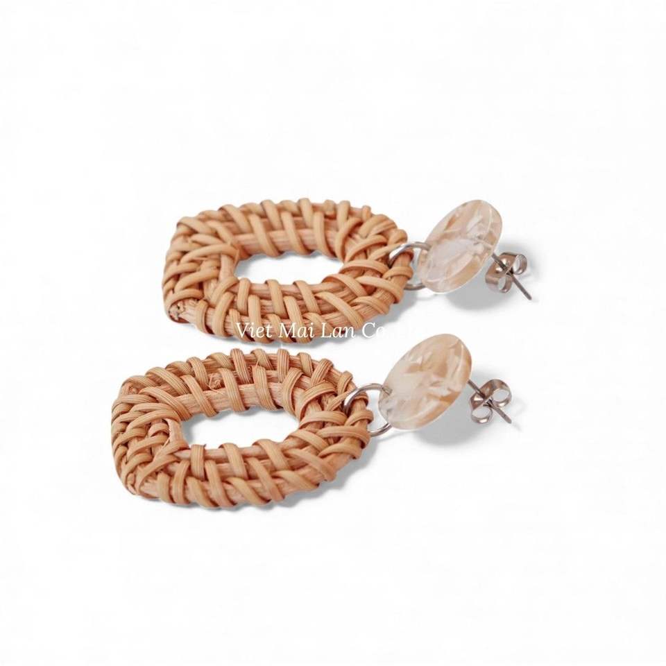 ต่างหูหวายวินเทจ น้ำหนักเบา ทำด้วยมือ เครื่องประดับสานธรรมชาติสำหรับสไตล์ฤดูร้อน จากเวียดนาม