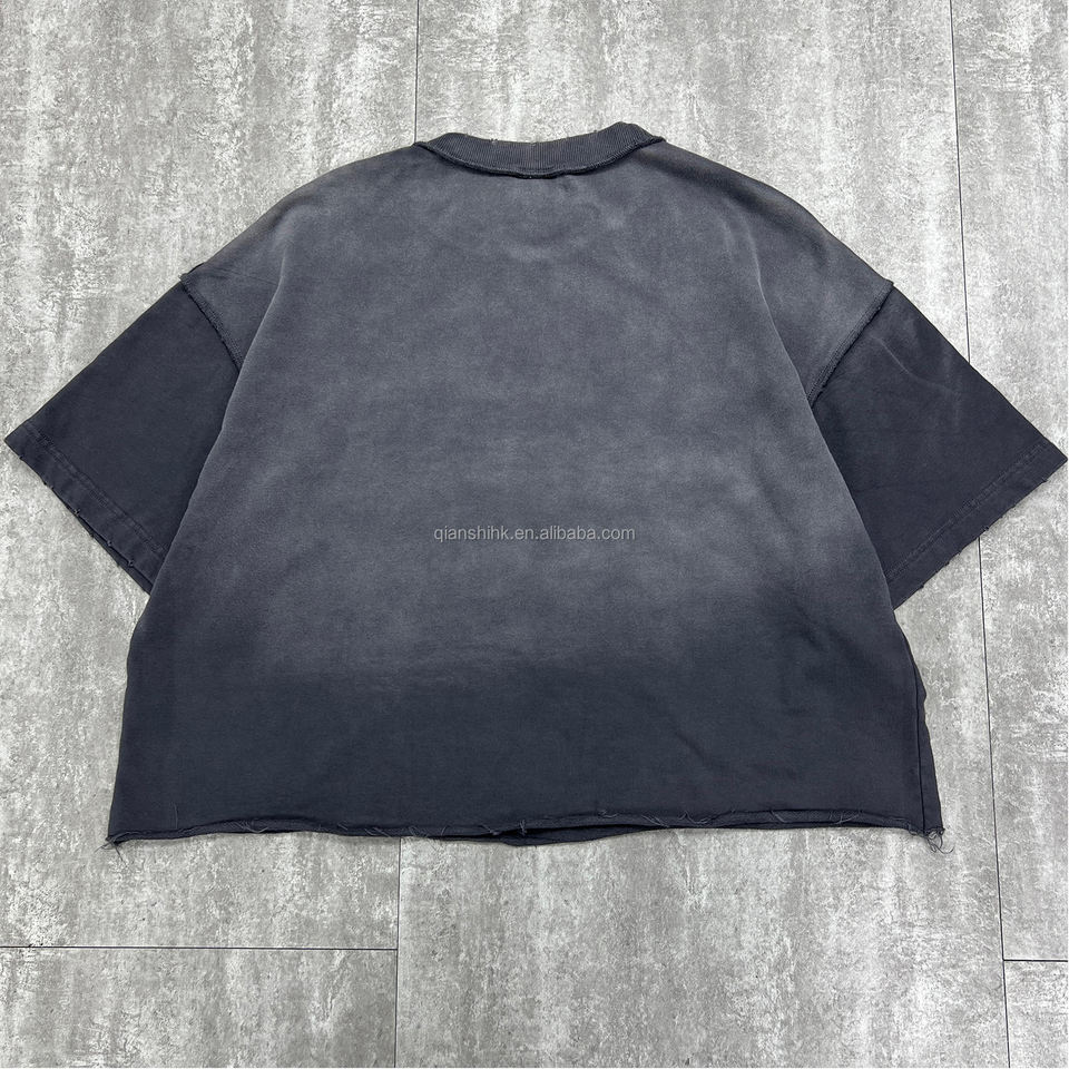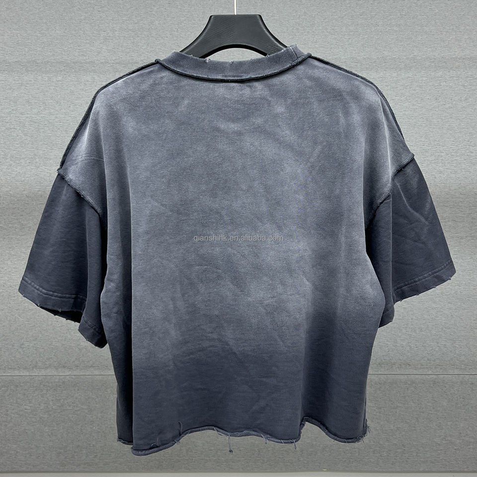 เสื้อเชิ๊ตผ้าฝ้ายขอบดิบวินเทจคุณภาพสูงเสื้อยืดลายครอป Boxy แบบปรับแต่งได้เสื้อยืดกราฟิกโอเวอร์ไซส์