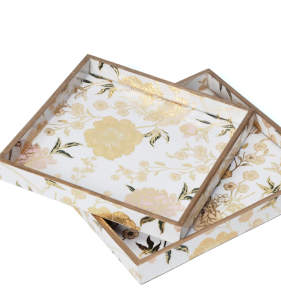 ถาดเสิร์ฟไม้ทรงสี่เหลี่ยมผืนผ้าสไตล์วินเทจพร้อมนกยูงสีสันสดใสพิมพ์ลาย