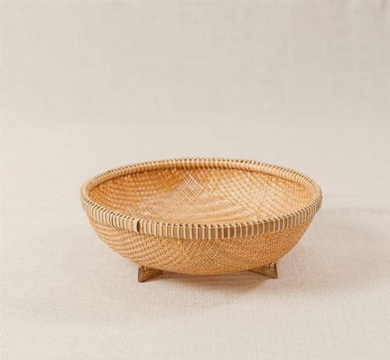 ตะกร้าไม้ไผ่ทรงสี่เหลี่ยมสไตล์วินเทจสำหรับใส่ผักผลไม้ของขบเคี้ยวและของเบ็ดเตล็ดสำหรับจัดเก็บ