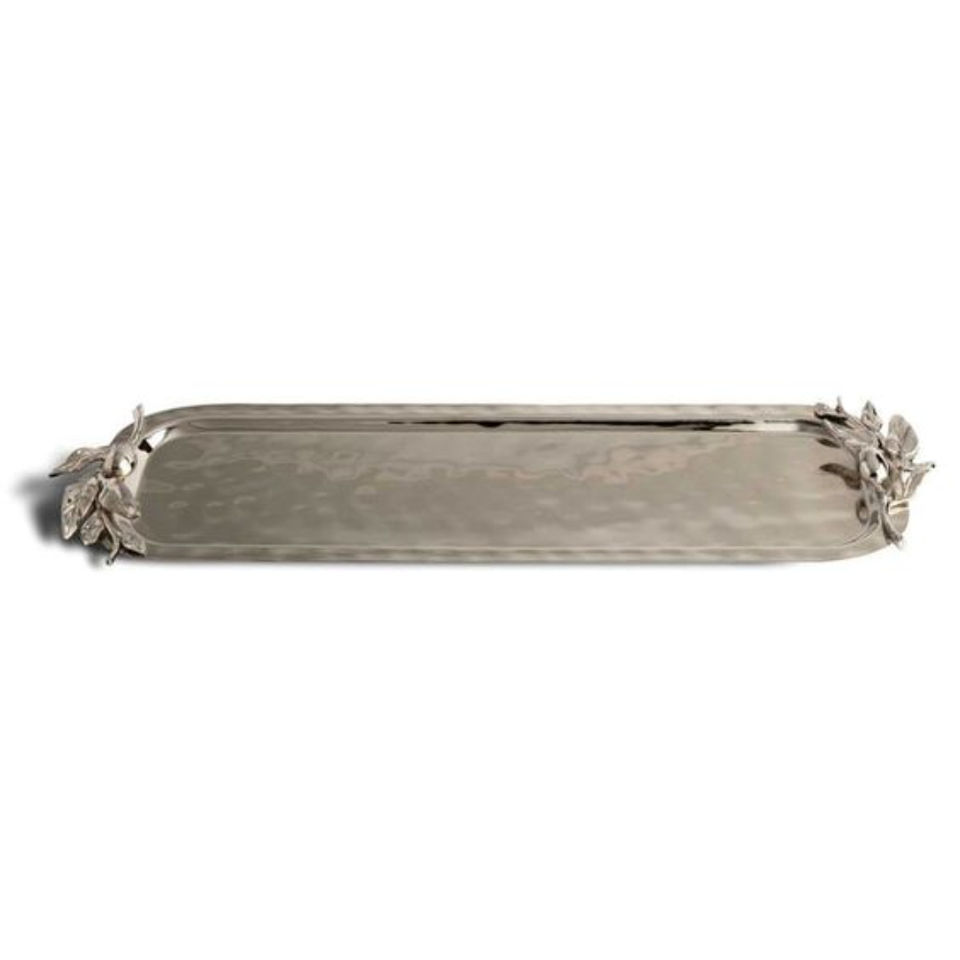 ถาดเสิร์ฟสีเงินสี่เหลี่ยมสไตล์วินเทจพร้อมที่จับสีทองอุปกรณ์ตกแต่งห้องครัวที่ใช้ในการจัดเลี้ยงเป็นมิตรกับสิ่งแวดล้อม
