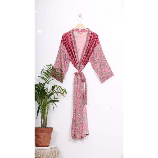 ชุดเดรสผ้าไหมลายส่าหรีสไตล์วินเทจชุดคลุมอาบน้ำชุดกิโมโนลายดอกไม้ชุดคลุมอาบน้ำชุดใส่เดินชายหาดสำหรับบ้านฤดูร้อนฤดูใบไม้ร่วงฤดูใบไม้ผลิ