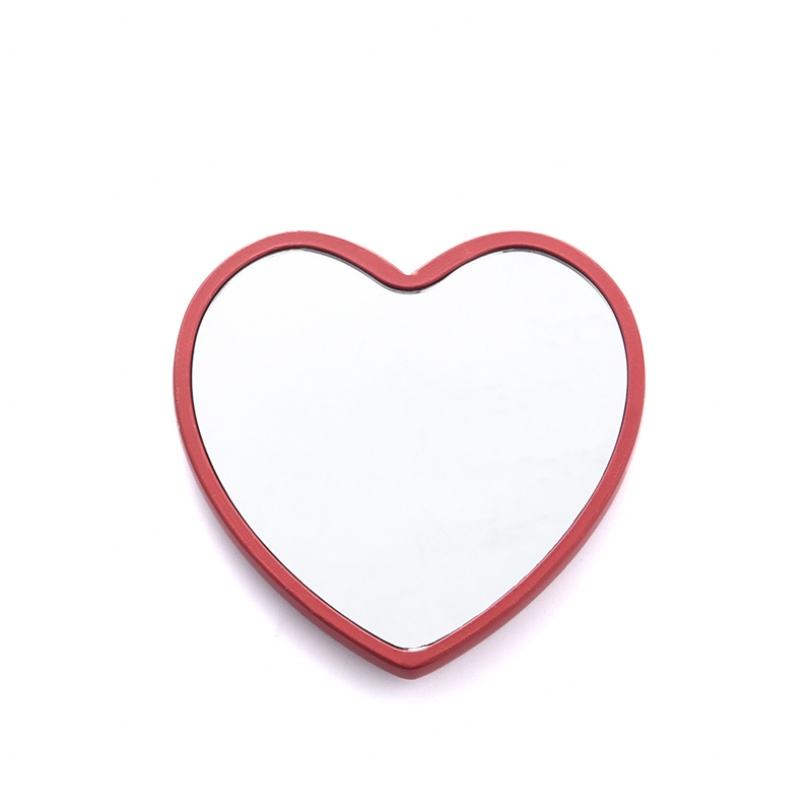 กระจกแต่งหน้ารูปหัวใจสีแดงวินเทจ กระจกเครื่องสำอาง พิมพ์โลโก้ กระจกพกพา