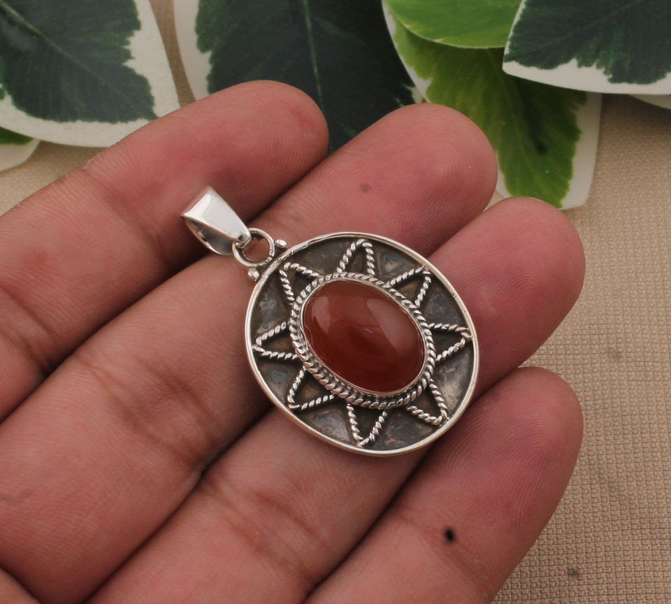จี้ห้อยคอทรงวิคตอเรียนประดับพลอยออนิกซ์สีแดงวินเทจ ตัวเรือนเงินแท้ 925 ชุบแพลตตินัม สำหรับทั้งชายและหญิง