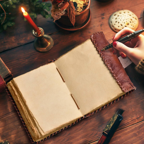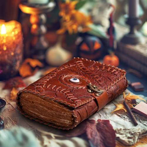 ชื่อผลิตภัณฑ์:วารสารหนังสีน้ำตาลเข้มแนววินเทจพร้อมคาถา hocus pocus และตาชั่วร้าย