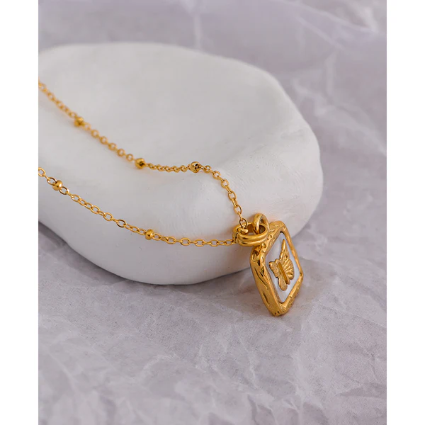สร้อยคอจี้สเตนเลสทรงสี่เหลี่ยมรูปผีเสื้อฝังไทเทเนียม1ชิ้นทันสมัยแนวย้อนยุควินเทจ