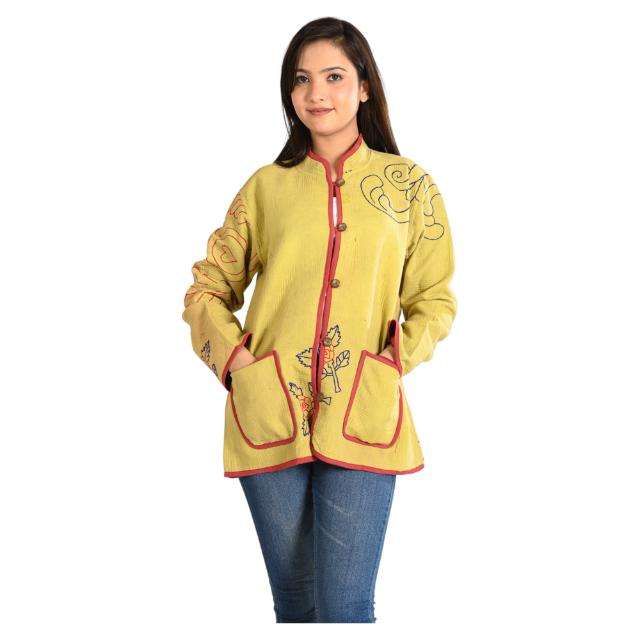 แจ็กเก็ตผ้าฝ้ายวินเทจสำหรับผู้หญิงสไตล์โบโฮลำลองผ้าทอรีไซเคิลเสื้อแจ็คเก็ตหรือเสื้อโค้ทฤดูใบไม้ร่วง