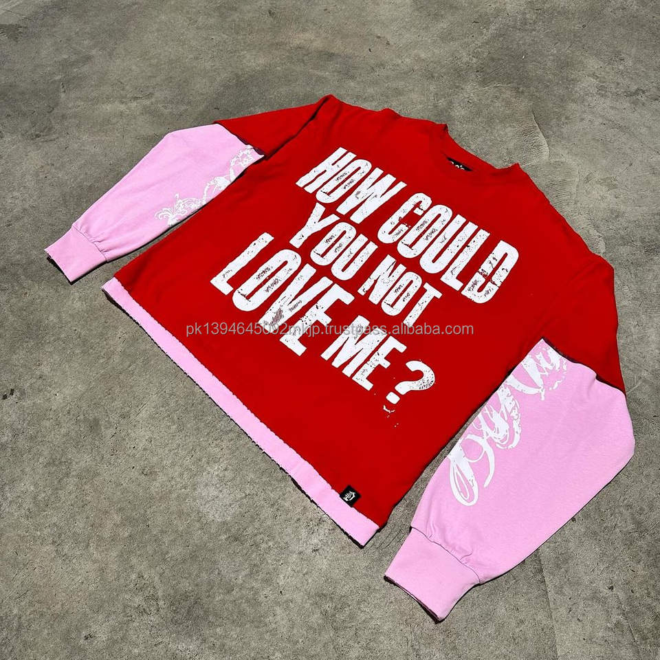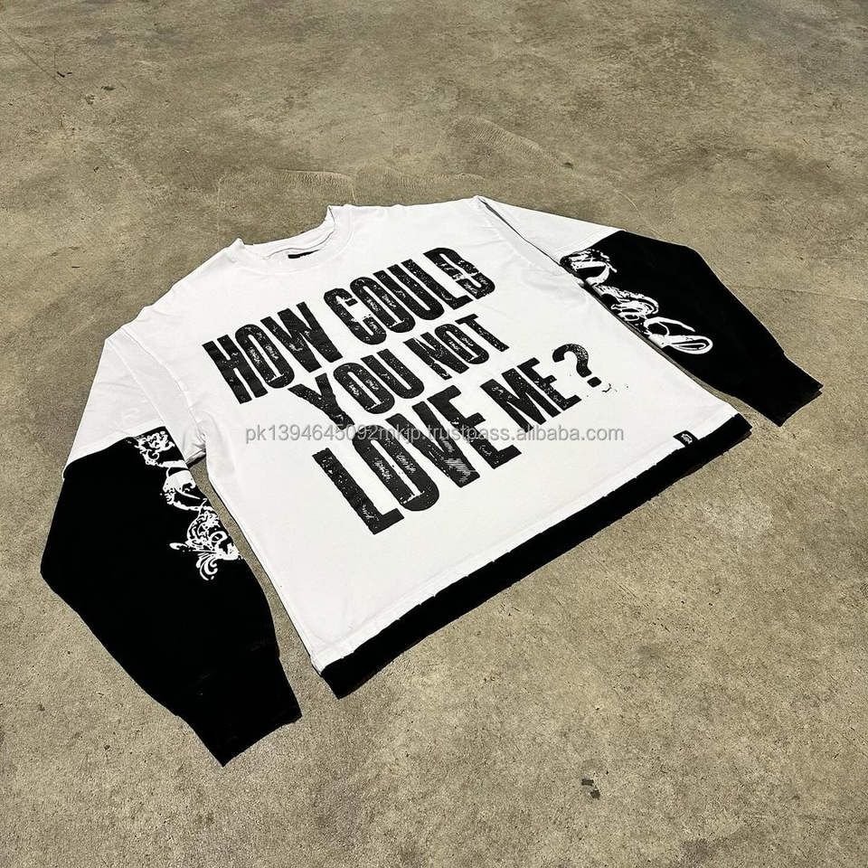 เสื้อยืดแขนยาวสองชั้นวินเทจของผู้ชายเสื้อยืดพิมพ์ลาย Dtg แบบกำหนดเอง