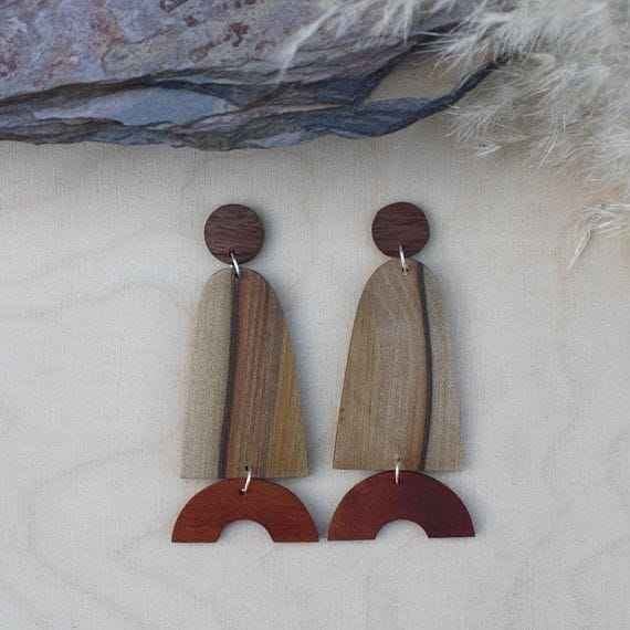 ต่างหูใบไม้จากไม้ธรรมชาติสำหรับผู้หญิงแบบลายฉลุโรแมนติกวินเทจ