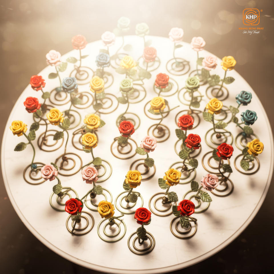 รูปปั้นดอกกุหลาบวินเทจเหล็กดัดเคลือบผงกันสนิมหลากสีสไตล์โบราณ ของตกแต่งบ้าน ของขวัญวันครบรอบแต่งงาน