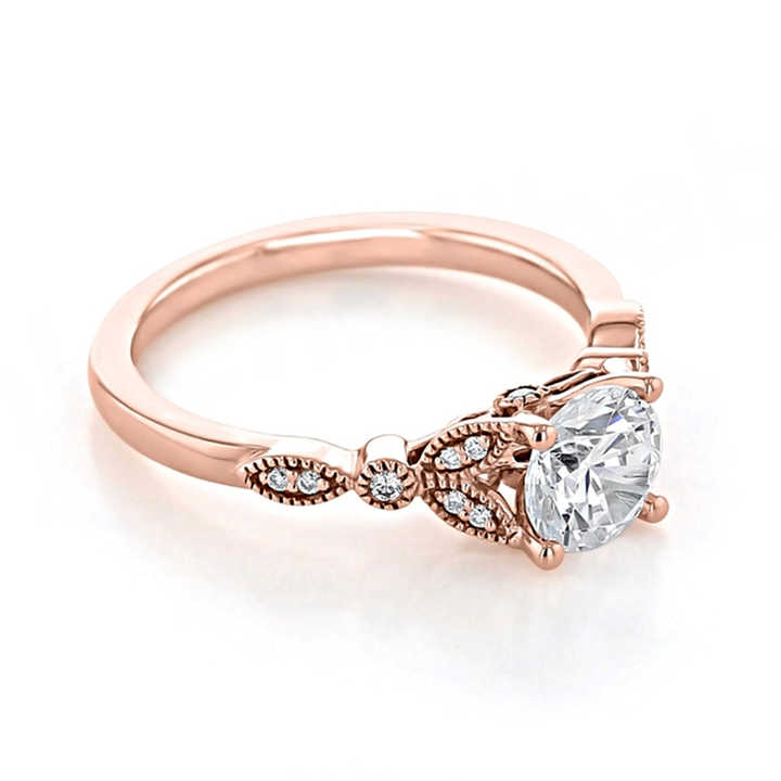 แหวนหมั้นเงินแท้ชุบทองคำสีโรสโกลด์วินเทจ ประดับโมอิสซาไนต์ทรงรี 3 กะรัต พร้อมใบรับรอง IGI และการฝังแบบ Prong Setting