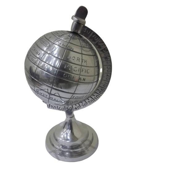 ลูกโลกหมุนได้แบบวินเทจ ทำจากอะลูมิเนียม พร้อมฐานโลหะเคลือบโครเมียม สำหรับตกแต่งบ้านและสำนักงาน