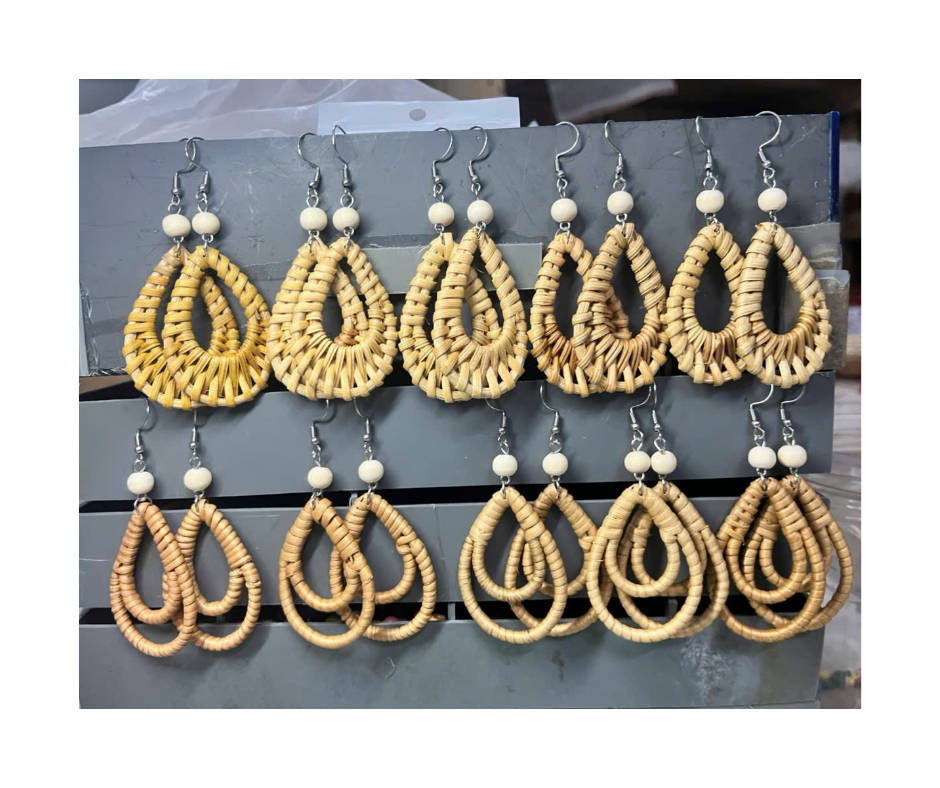 ต่างหูหวายทรงกลมแนววินเทจต่างหูหวายทำมือสวยงามน้ำหนักเบาเครื่องประดับแฟชั่นทันสมัยสำหรับโรงงานข้อเสนอพิเศษ