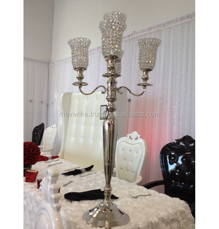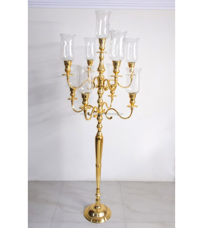 เชิงเทียนโลหะแวววาวสูงสีทองสไตล์วินเทจพร้อมเฮอริเคนถ้วยคริสตัลอุปกรณ์ตกแต่งโต๊ะสำหรับงานแต่งงาน