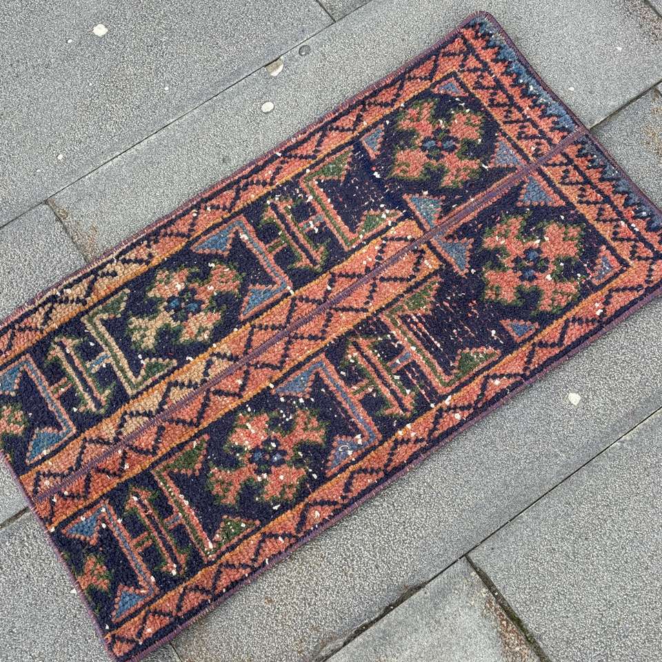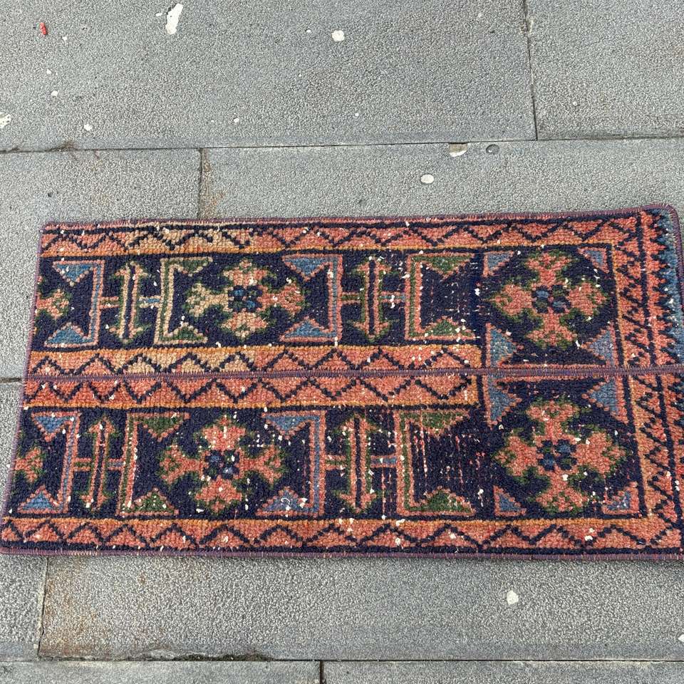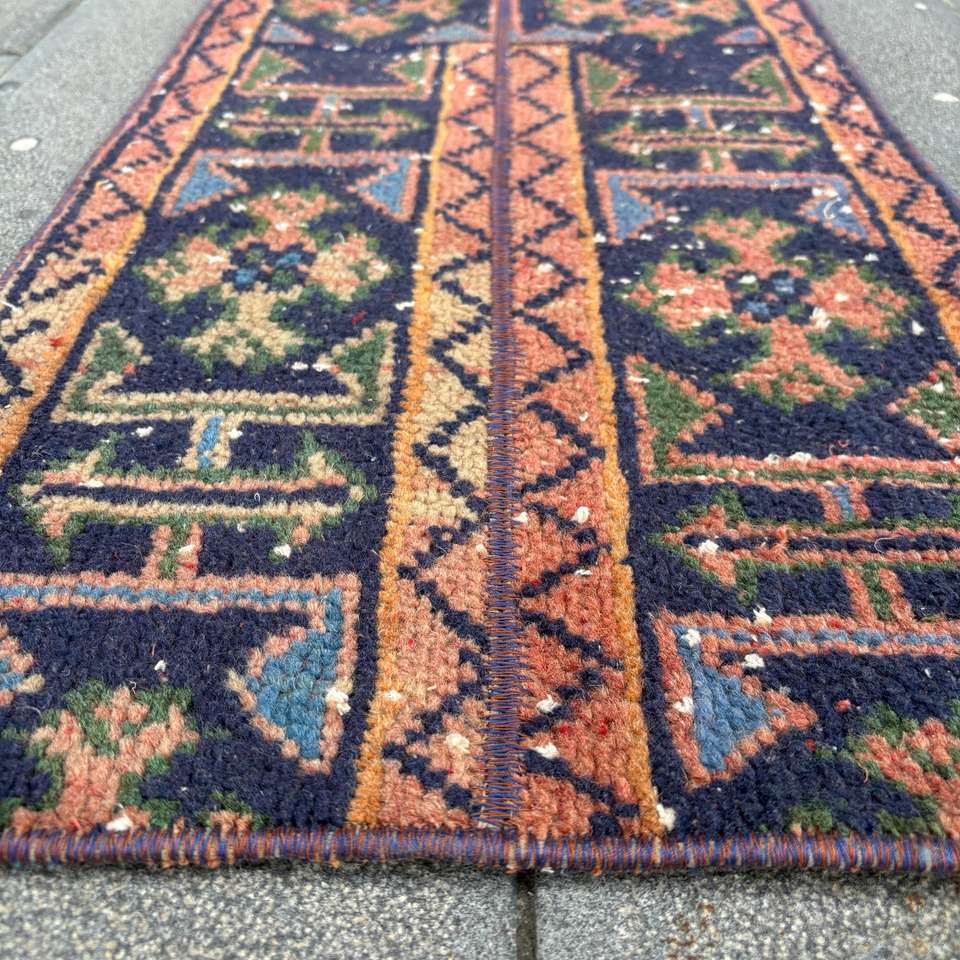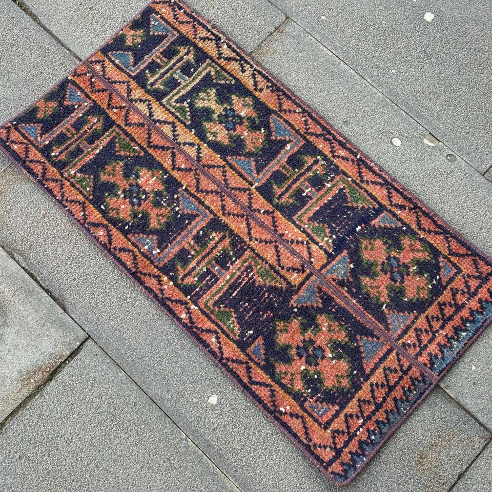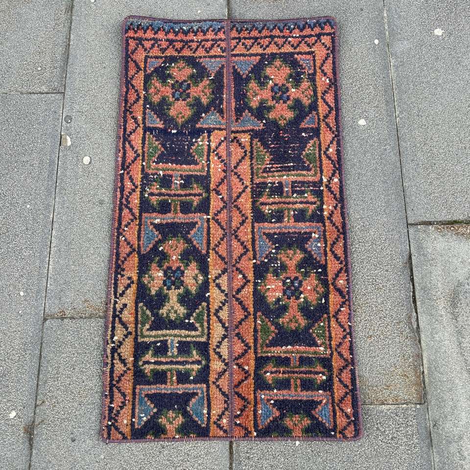 พรมวินเทจ ขนาด 1.3x2.5 ฟุต พรมขนาดเล็ก พรมขนสัตว์สีแดงน้ำเงิน