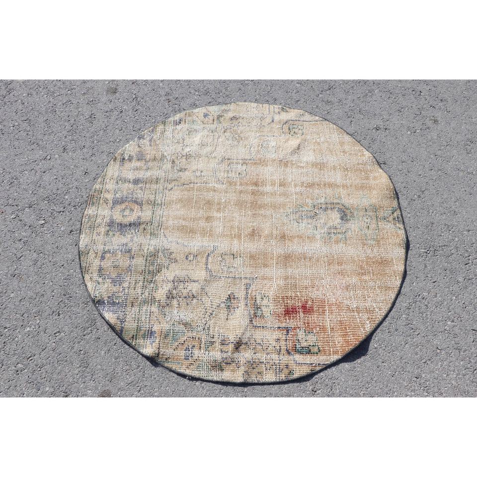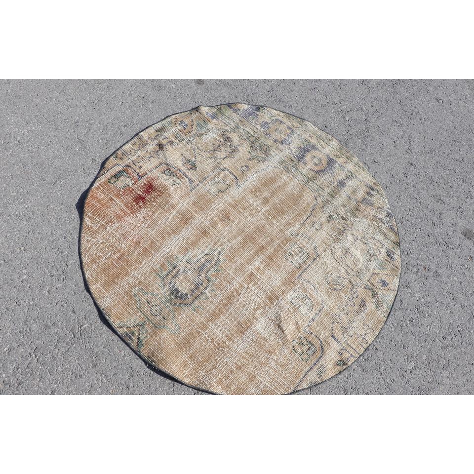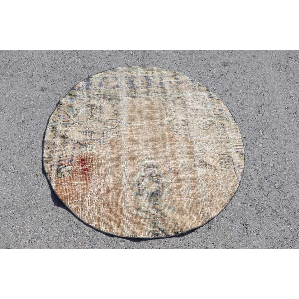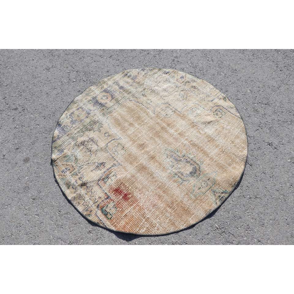 พรมวินเทจ 3.9x3.9 ฟุต สีน้ำตาล-น้ำเงินไล่เฉด ทำจากขนสัตว์ ผลิตในตุรกี