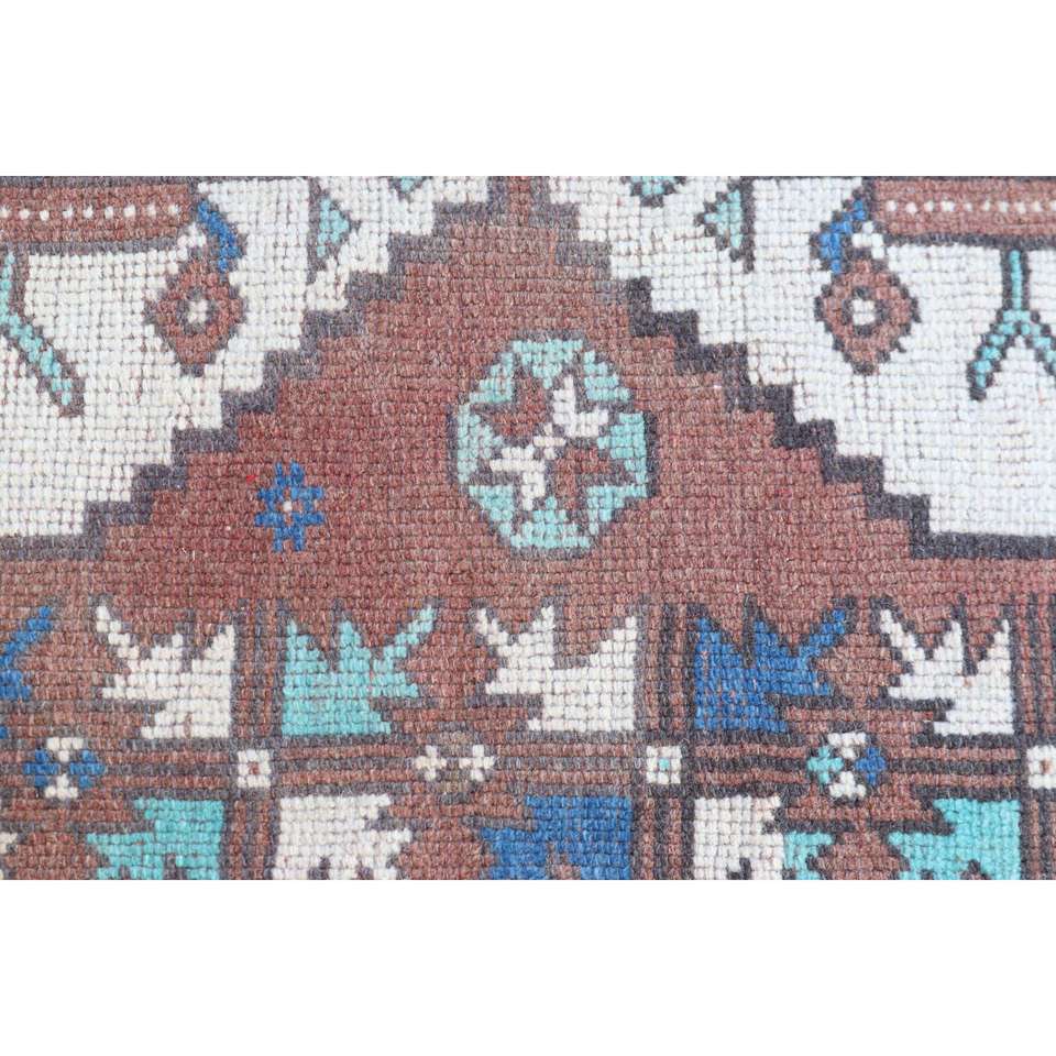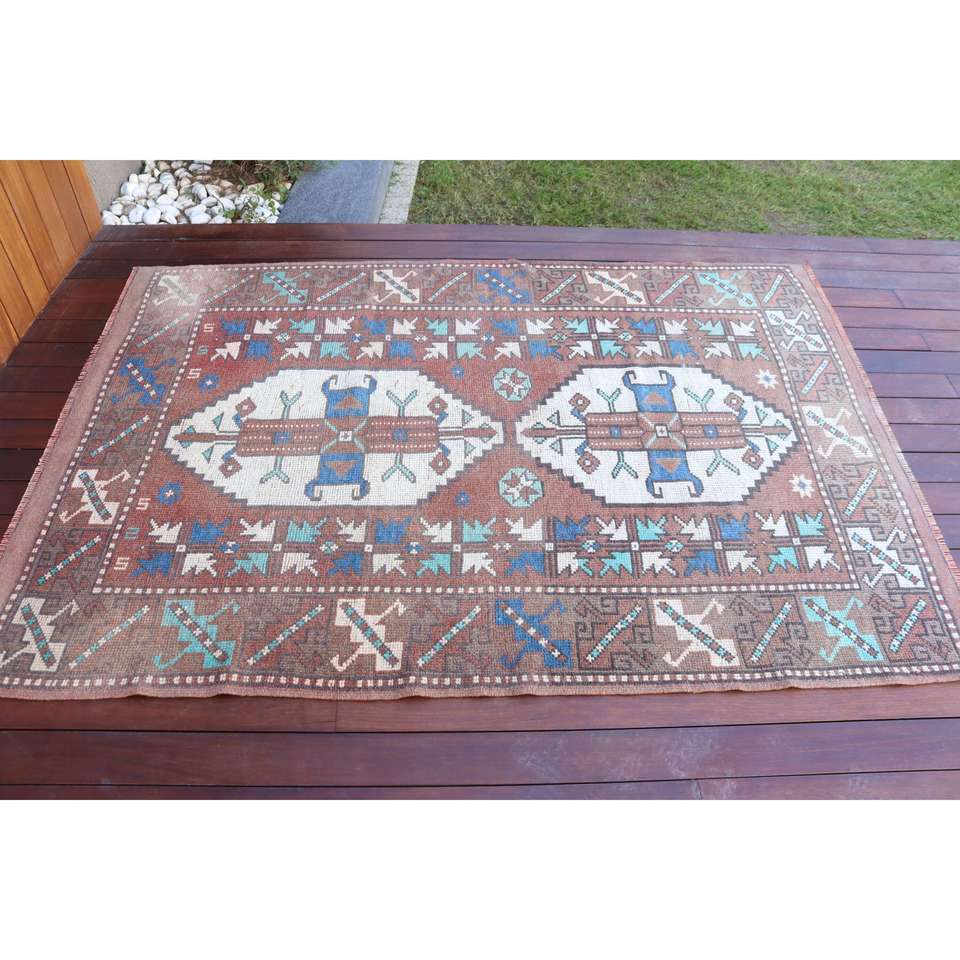 พรมวินเทจ ขนาด 4.4x6.3 ฟุต พรมขนสัตว์สีน้ำตาล-น้ำเงิน
