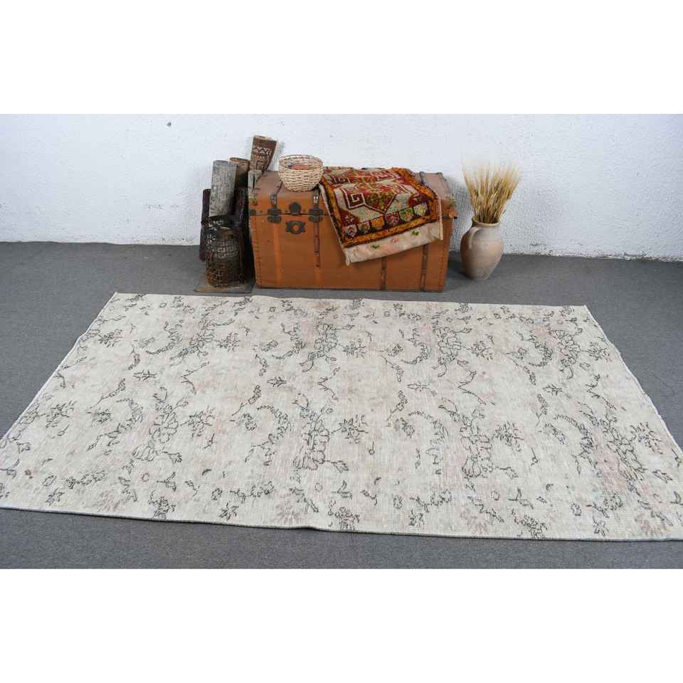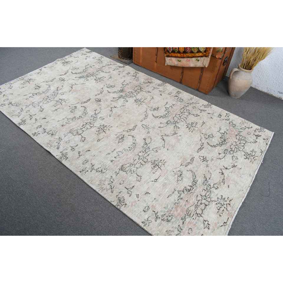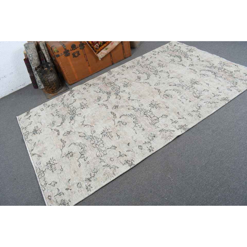 พรมวินเทจ ขนาด 4.5x7.9 ฟุต พรมปูพื้นลายดอกไม้สีขาว ทำจากขนสัตว์แบบตุรกี