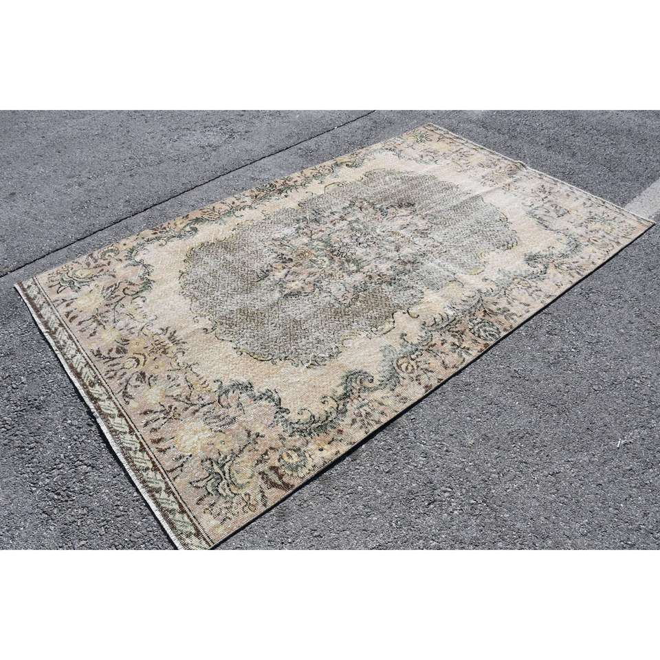 พรมวินเทจ, พรมตุรกีขนาด 5.3x8.9 ฟุต, พรมขนสัตว์สีน้ำตาลสไตล์ตะวันตกเฉียงใต้