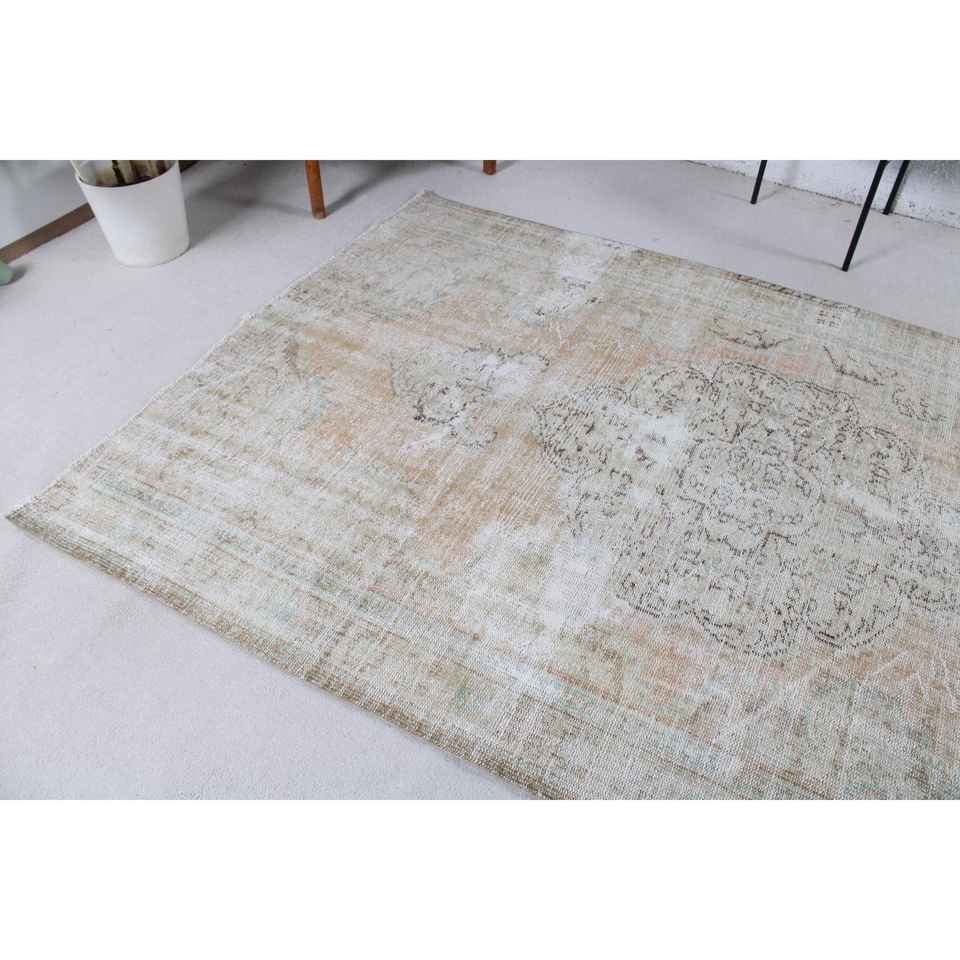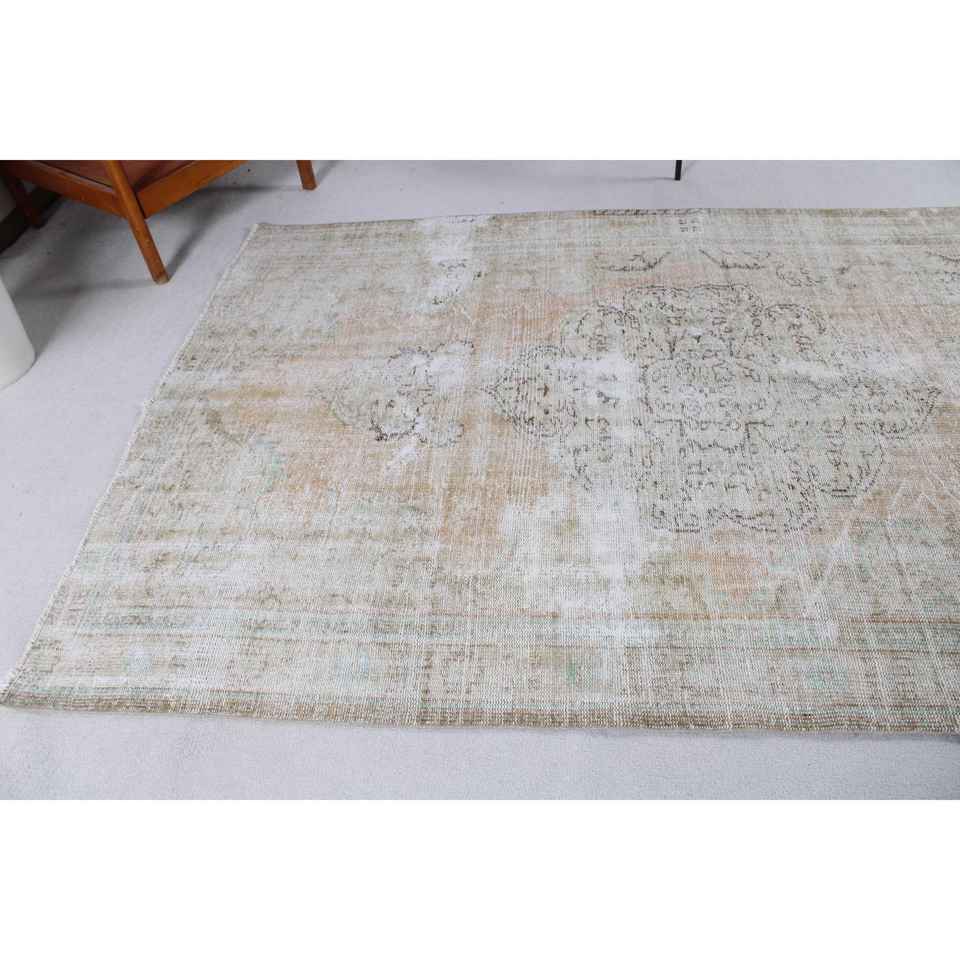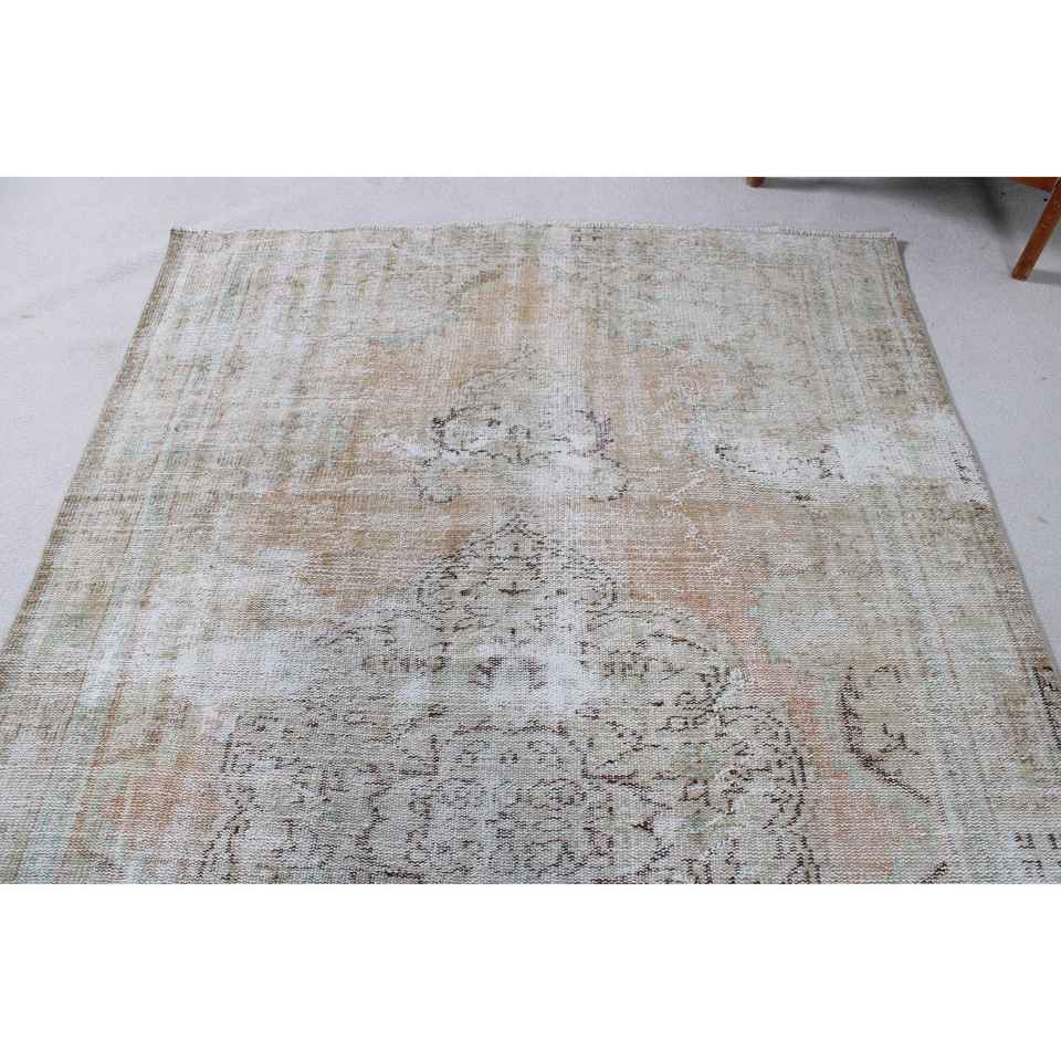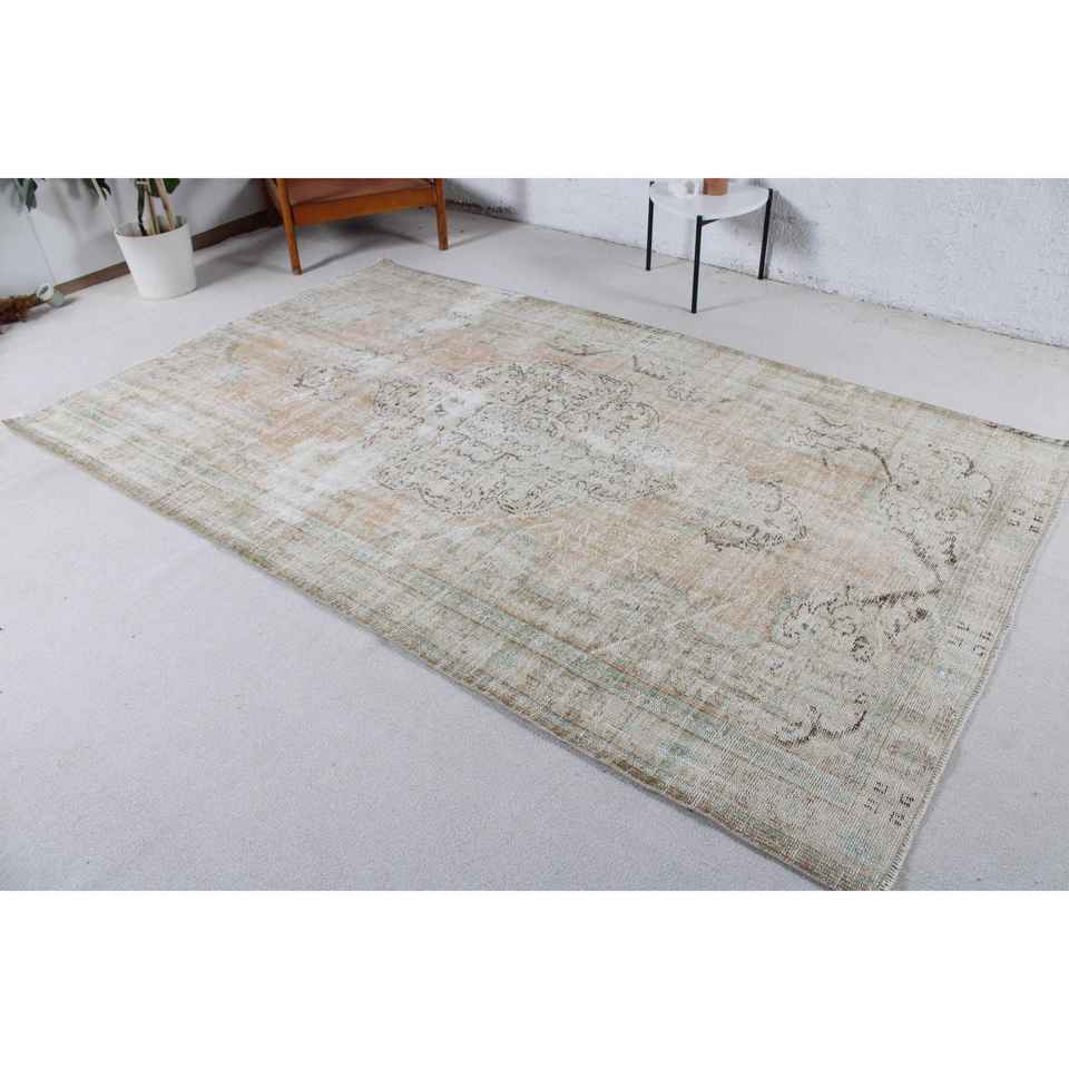 พรมวินเทจ ขนาด 5.5x8.9 ฟุต พรมขนาดใหญ่ สีน้ำตาล-น้ำเงิน ทำจากขนสัตว์