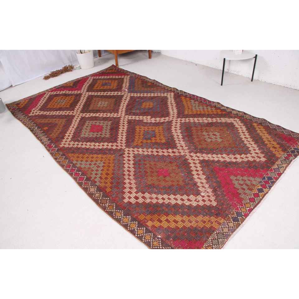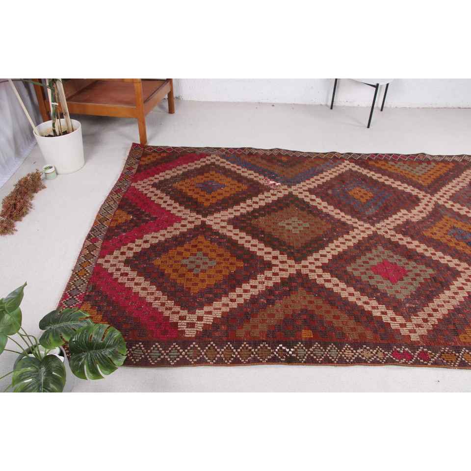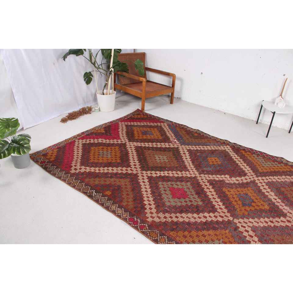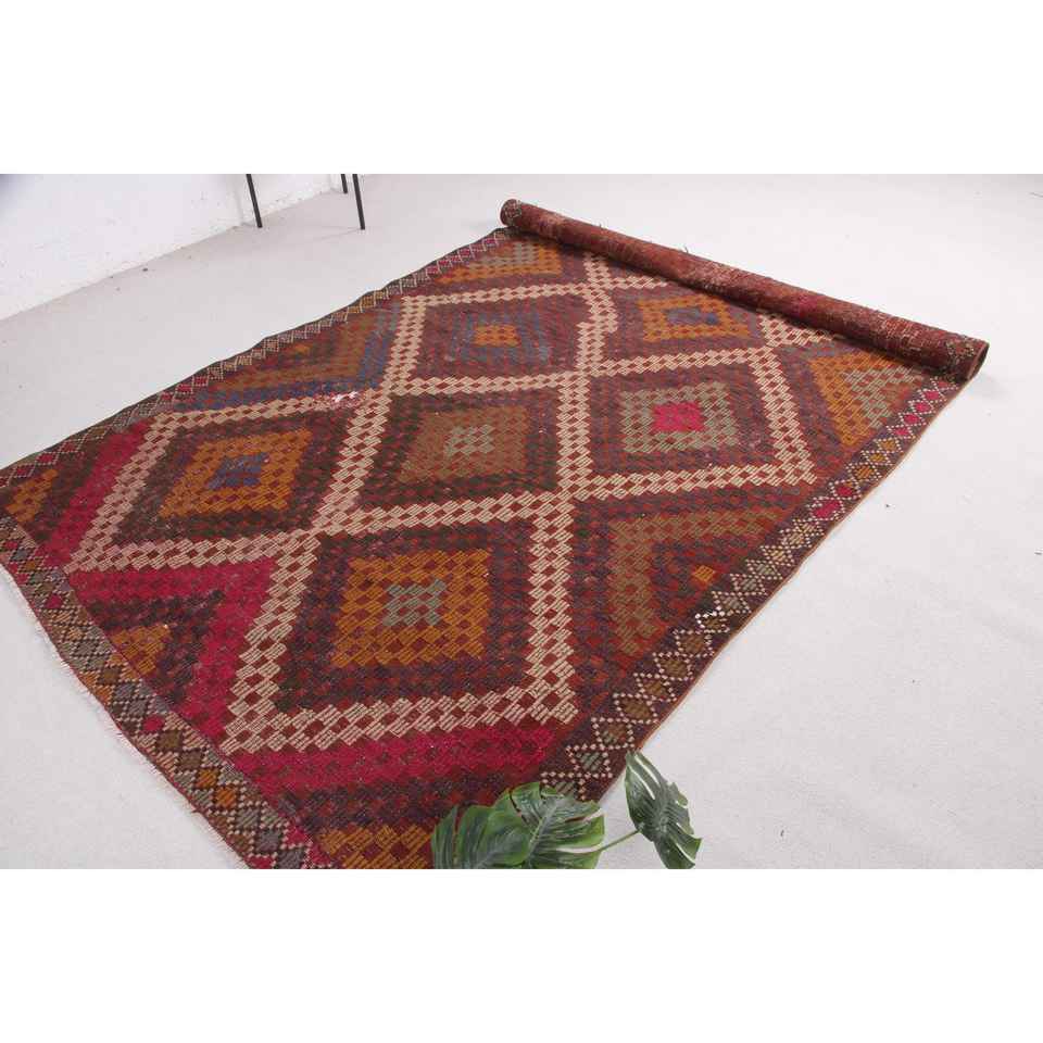 พรมวินเทจ ขนาด 5.6x10.2 ฟุต พรมขนาดใหญ่ ลายสัตว์สีแดง พรมขนสัตว์ตุรกี
